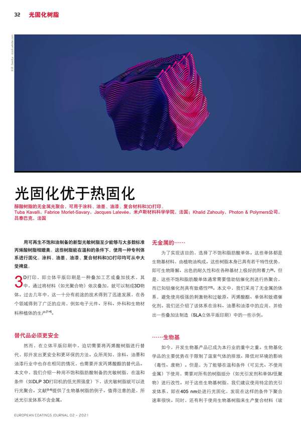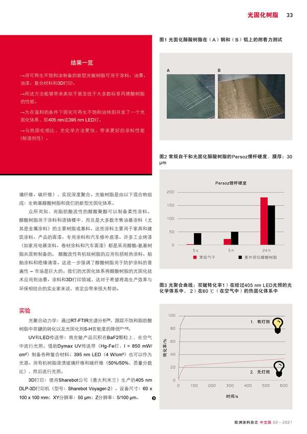 醇酸樹脂的無金屬光聚合,可用于涂料、油墨、油漆、復(fù)合材料和3D打印