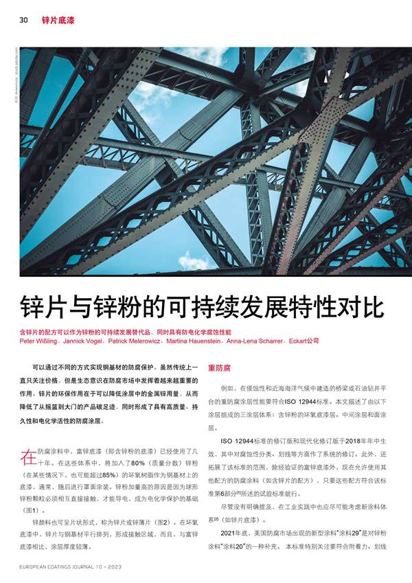 摘要:含鋅片的配方可以作為鋅粉的可持續(xù)發(fā)展替代品, 同時具有防電化學腐蝕性能