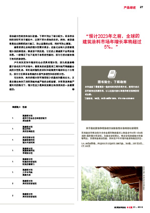 專題:功能涂料 環(huán)氧涂料:用于低排放地坪的固化劑 防涂鴉聚氨酯應(yīng)用的有機(jī)硅助劑 市場報(bào)告:性能高,銷量大