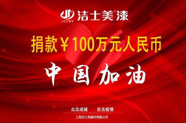 潔士美漆捐款100萬元支援新冠肺炎疫情阻擊戰