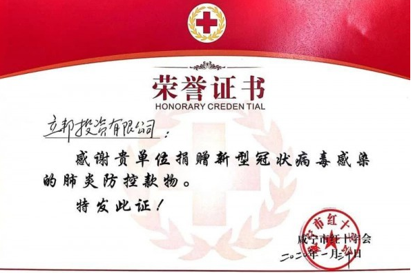 立邦中國(guó)向湖北省咸寧市紅十字會(huì)捐款200萬(wàn)元
