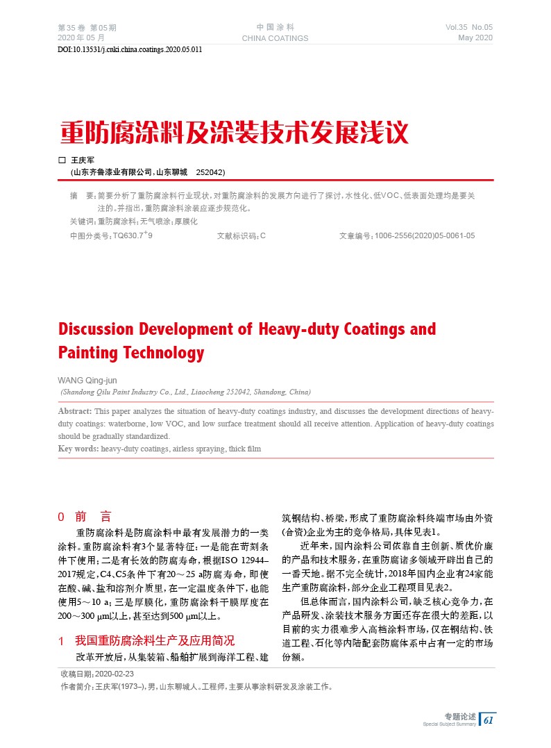 發(fā)表于2020-08-07 16:49:08| 次閱讀| 來(lái)源中國(guó)涂料| 作者王慶軍