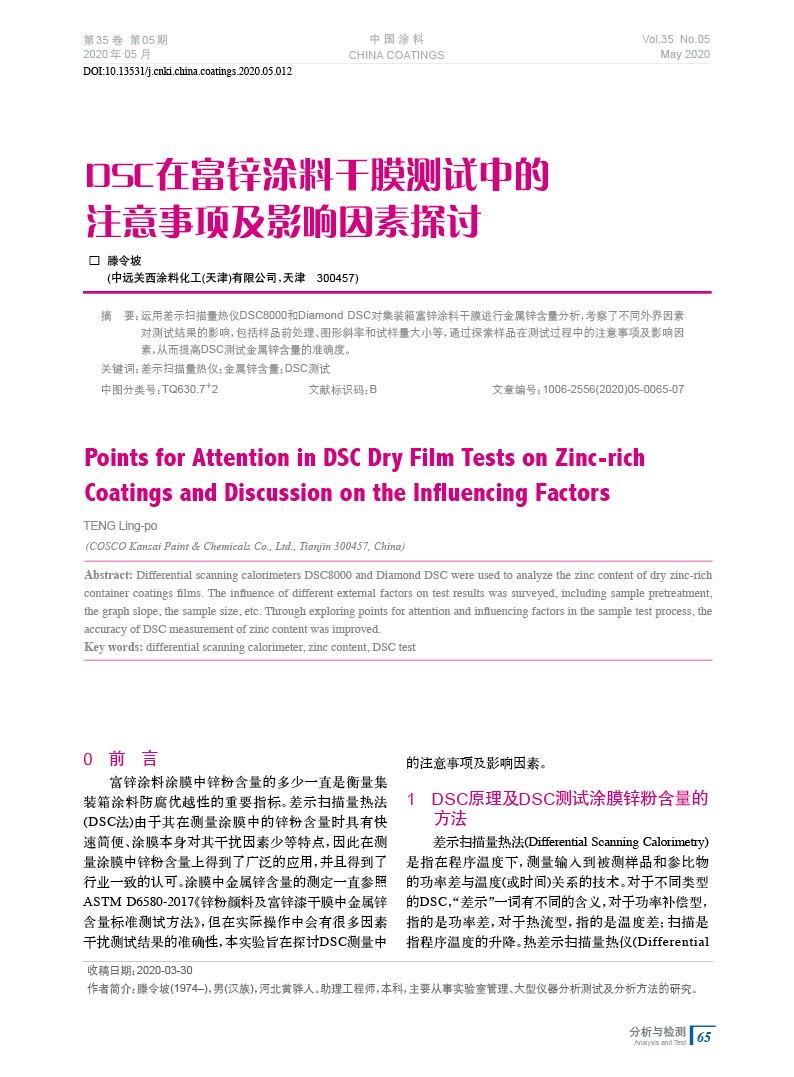 DSC在富鋅涂料干膜測試中的注意事項及影響因素探討