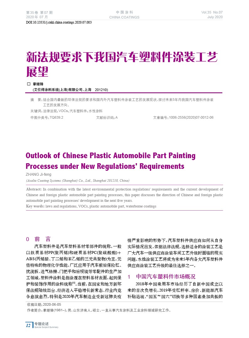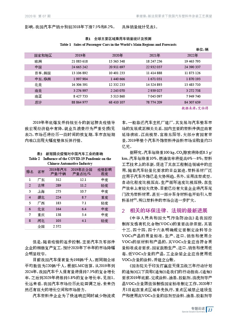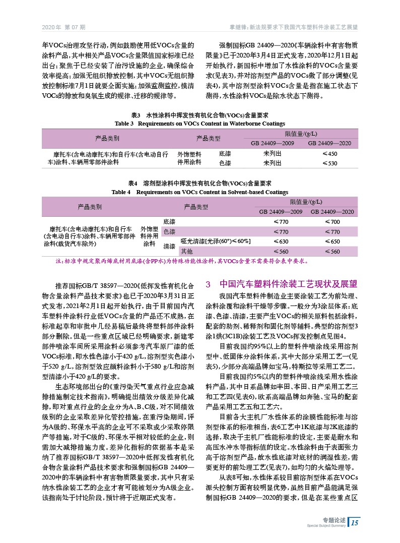 新法規(guī)要求下我國汽車塑料件涂裝工藝展望