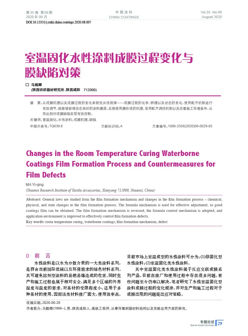室溫固化水性涂料成膜過程變化與膜缺陷對策