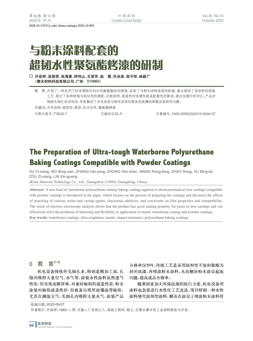 與粉末涂料配套的超韌水性聚氨酯烤漆的研制