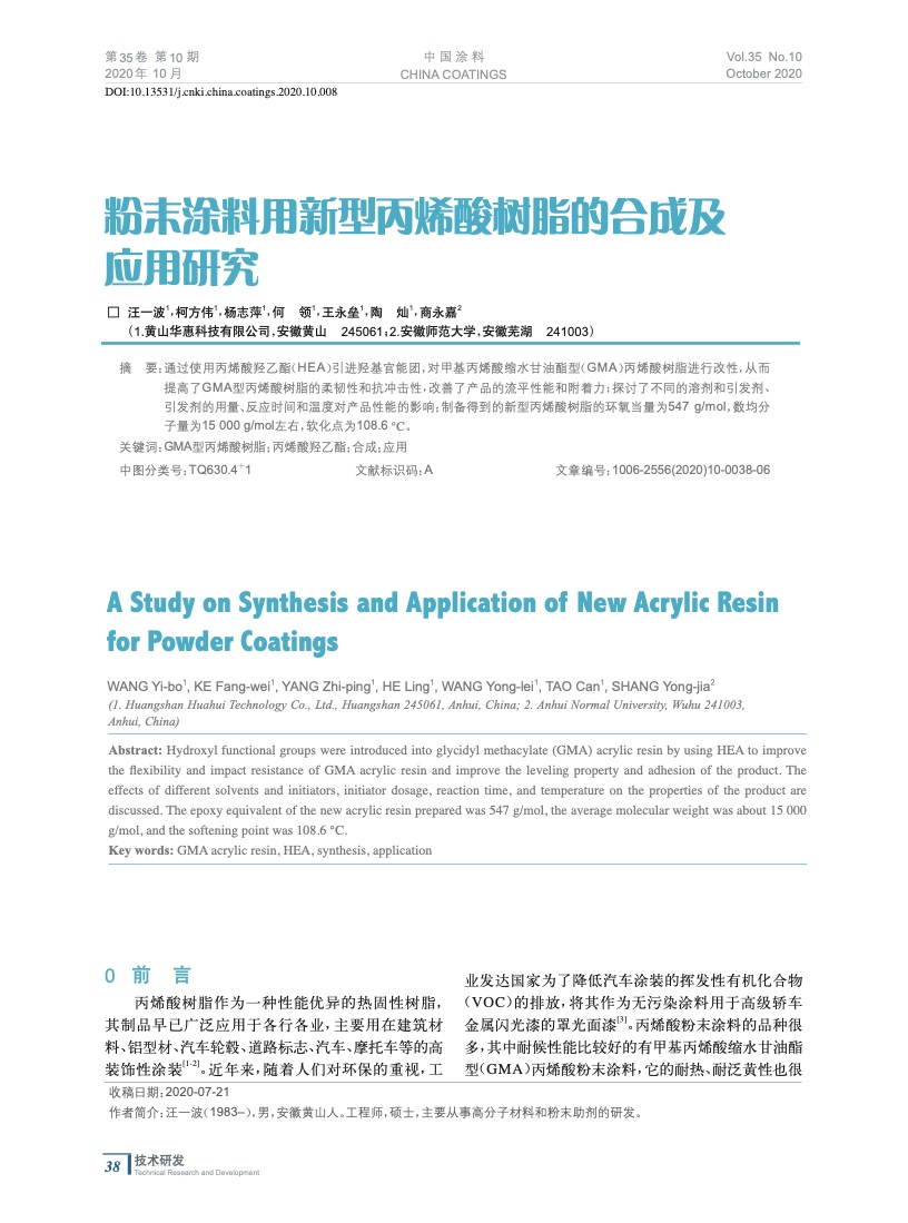 本文系作者@汪一波,柯方偉,楊志萍,何 領,王永壘,陶 燦,商永嘉 授權中國涂料網發表,并經中國涂料網編輯,未經允許不得轉載,如需轉載請聯系chinacoatingnet@vip.163.com