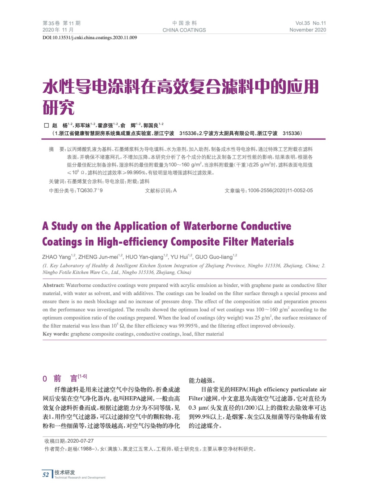 水性導電涂料在高效復合濾料中的應用研究