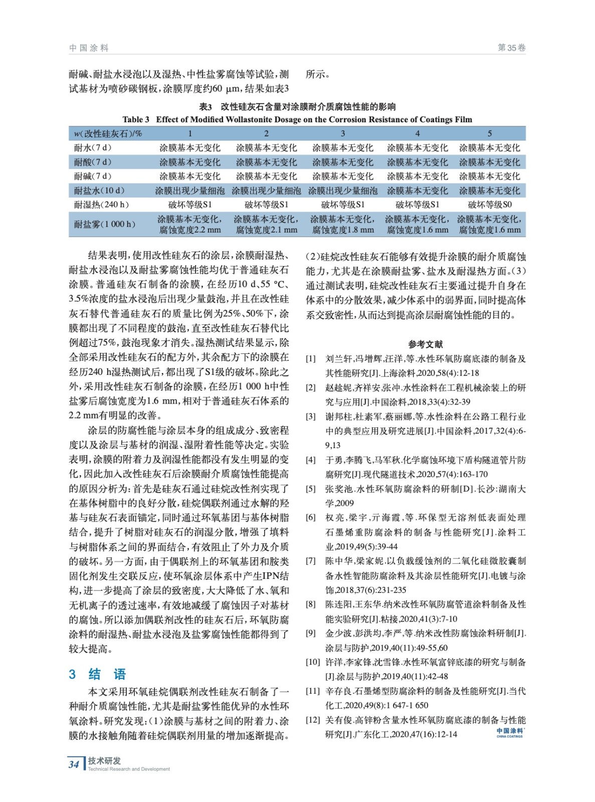 改性硅灰石對水性防腐涂料性能的影響