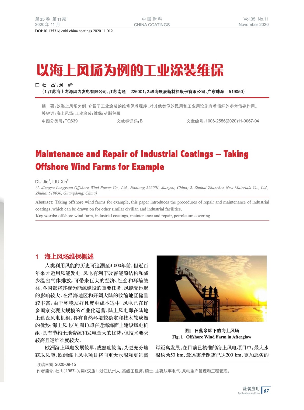 以海上風場為例,介紹了工業涂裝的維修保養程序,對其他類似的民用和工業用設施有著很好的參考借鑒作用。