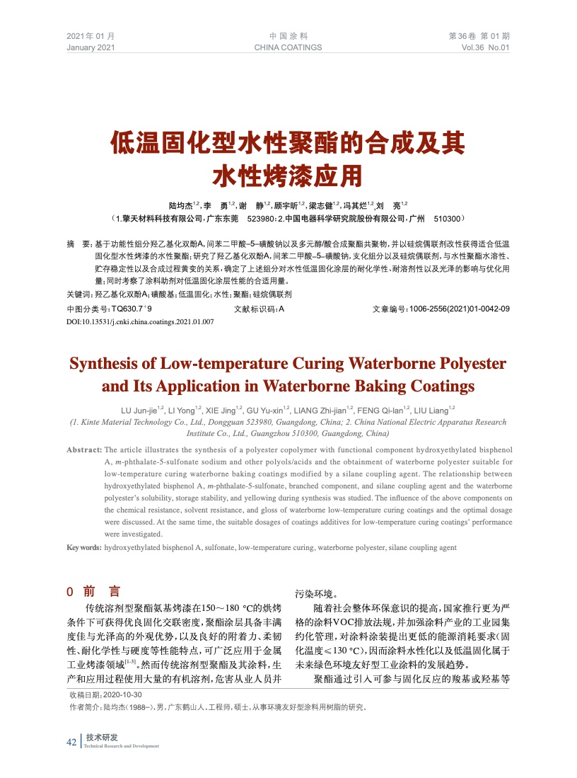 發表于2021-03-15 15:42:15| 次閱讀| 來源中國涂料| 作者陸均杰,李 勇,謝 靜,顧宇昕,梁志健,馮其爛,劉 亮