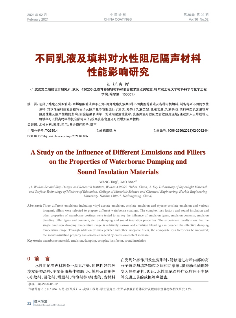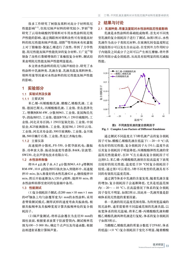 不同乳液及填料對(duì)水性阻尼隔聲材料性能影響研究