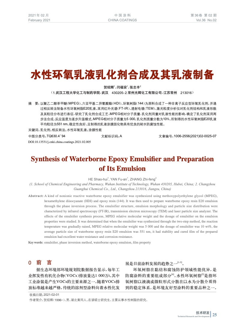 水性環(huán)氧乳液乳化劑合成及其乳液制備