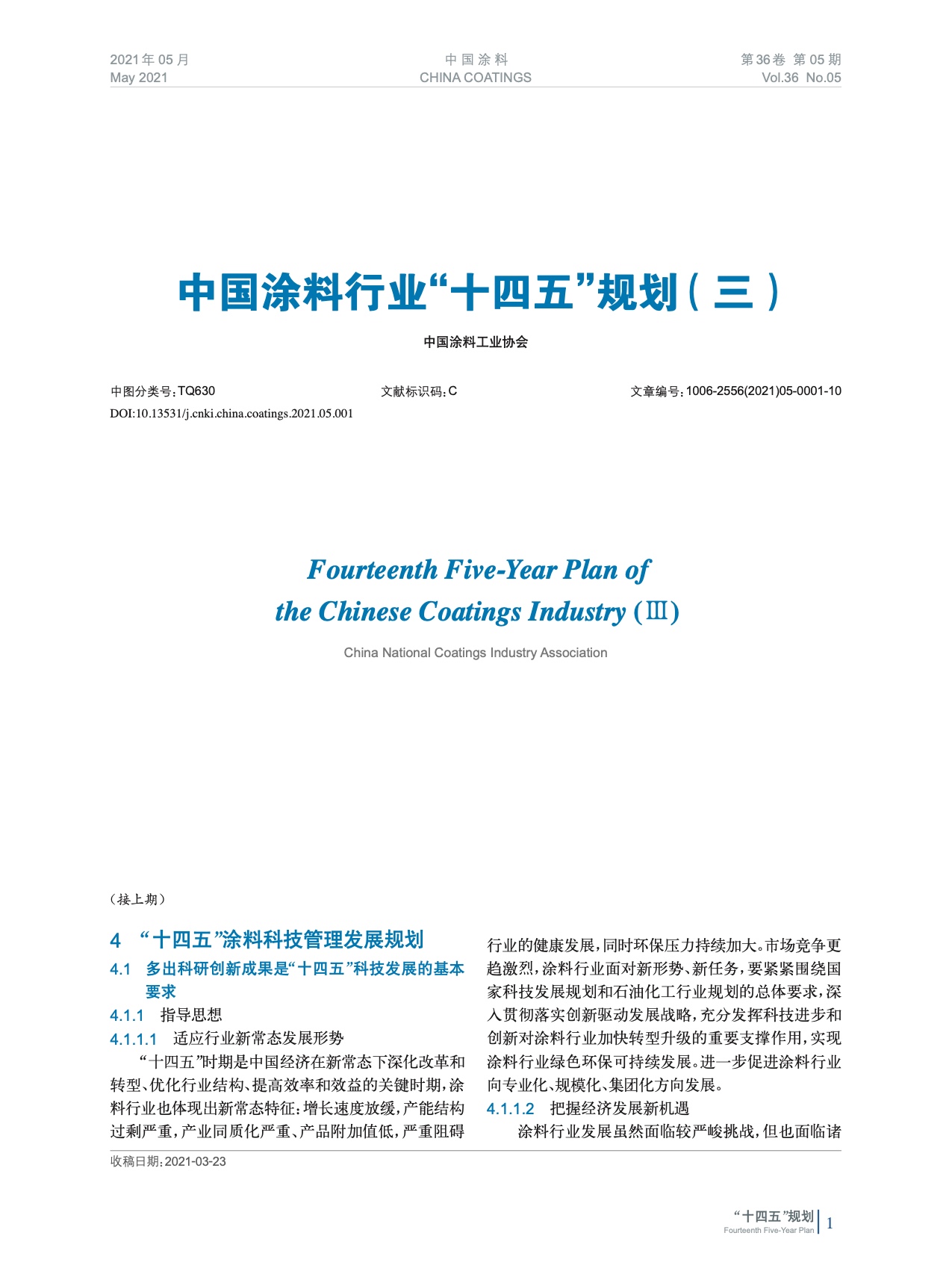 摘要:編者按:2021年3月24日,《中國涂料行業“十四五”規劃》于“2021中國國際涂料大會”期間正式發布,為中國涂料行業未來5年的發展擘畫了目標和方向。為了使涂料行業及相關領域及時深入了解《中國涂料行業“十四五”規劃》的精髓和全貌,本刊從第三期開始全文刊登,并分別解讀重點領域的“十四五”發展規劃,以饗讀者。