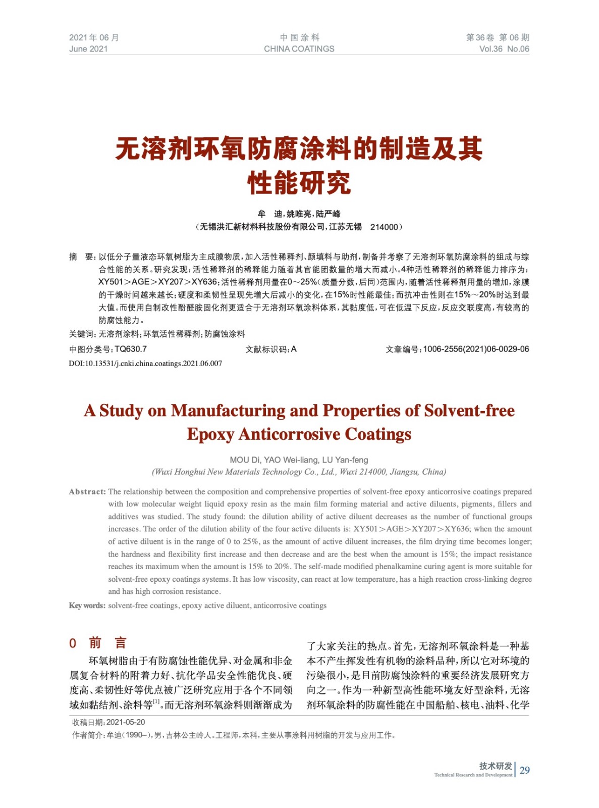 本文系作者@牟 迪,姚唯亮,陸嚴峰 授權中國涂料網發表,并經中國涂料網編輯,未經允許不得轉載,如需轉載請聯系chinacoatingnet@vip.163.com