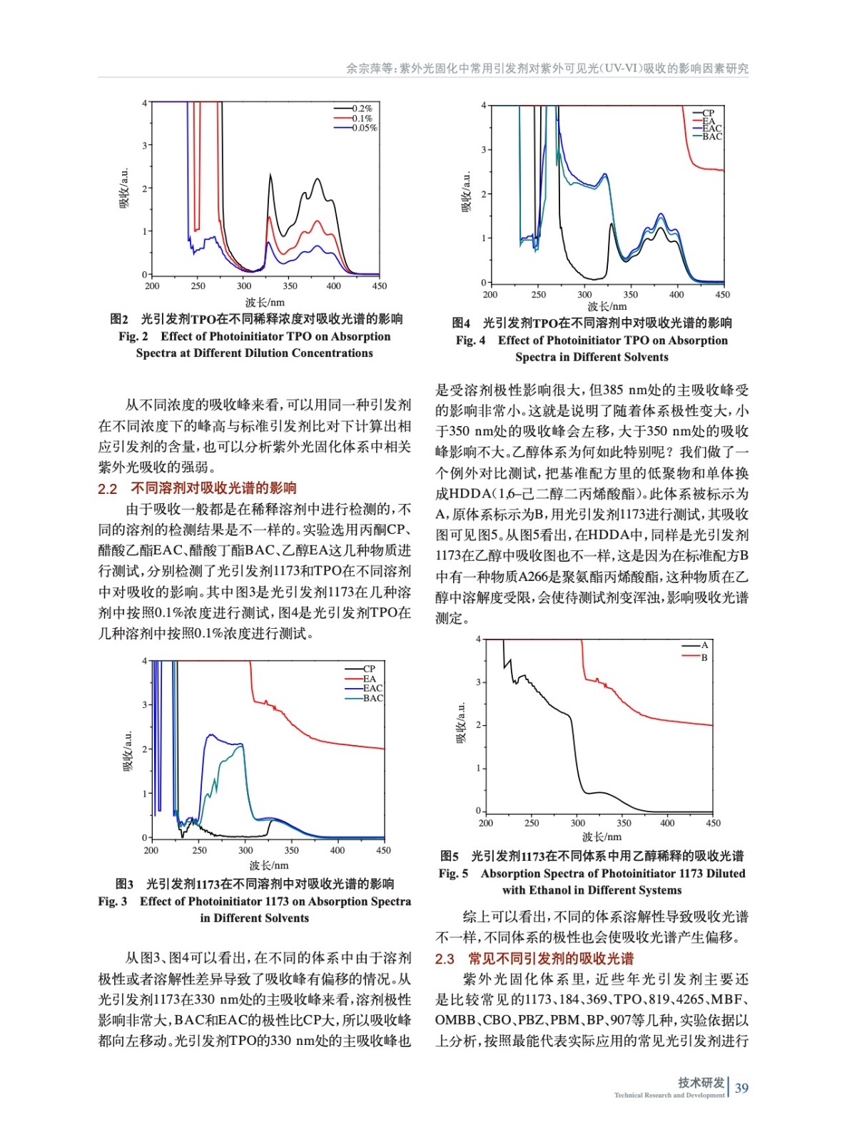 紫外光固化中常用引發劑對紫外可見光(UV-VI)吸收的影響因素研究