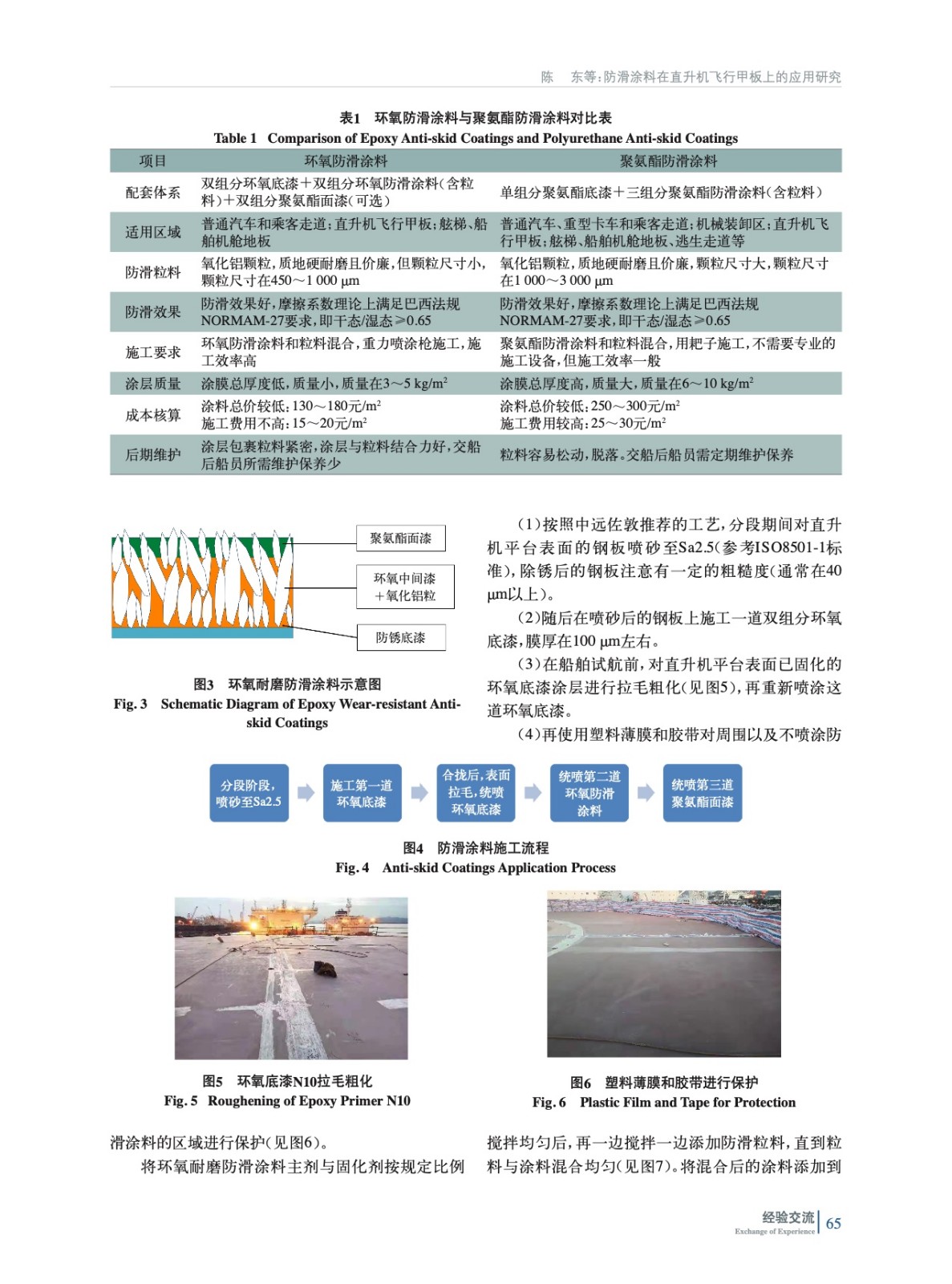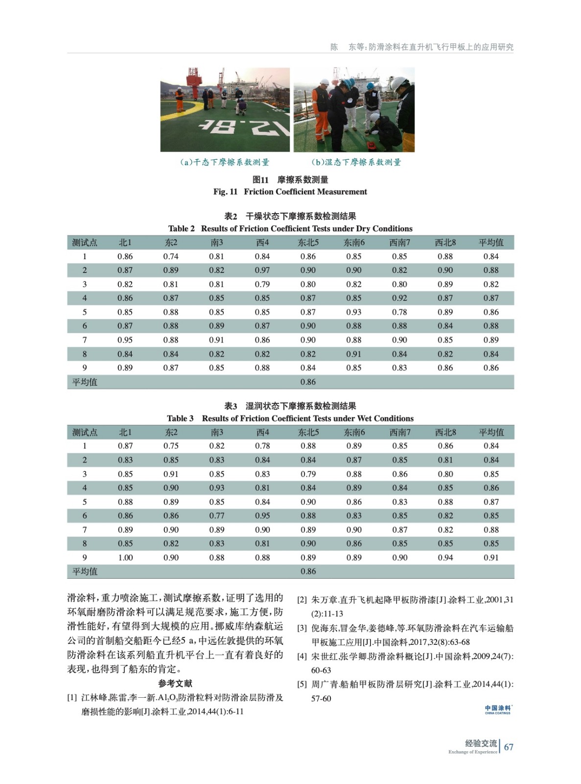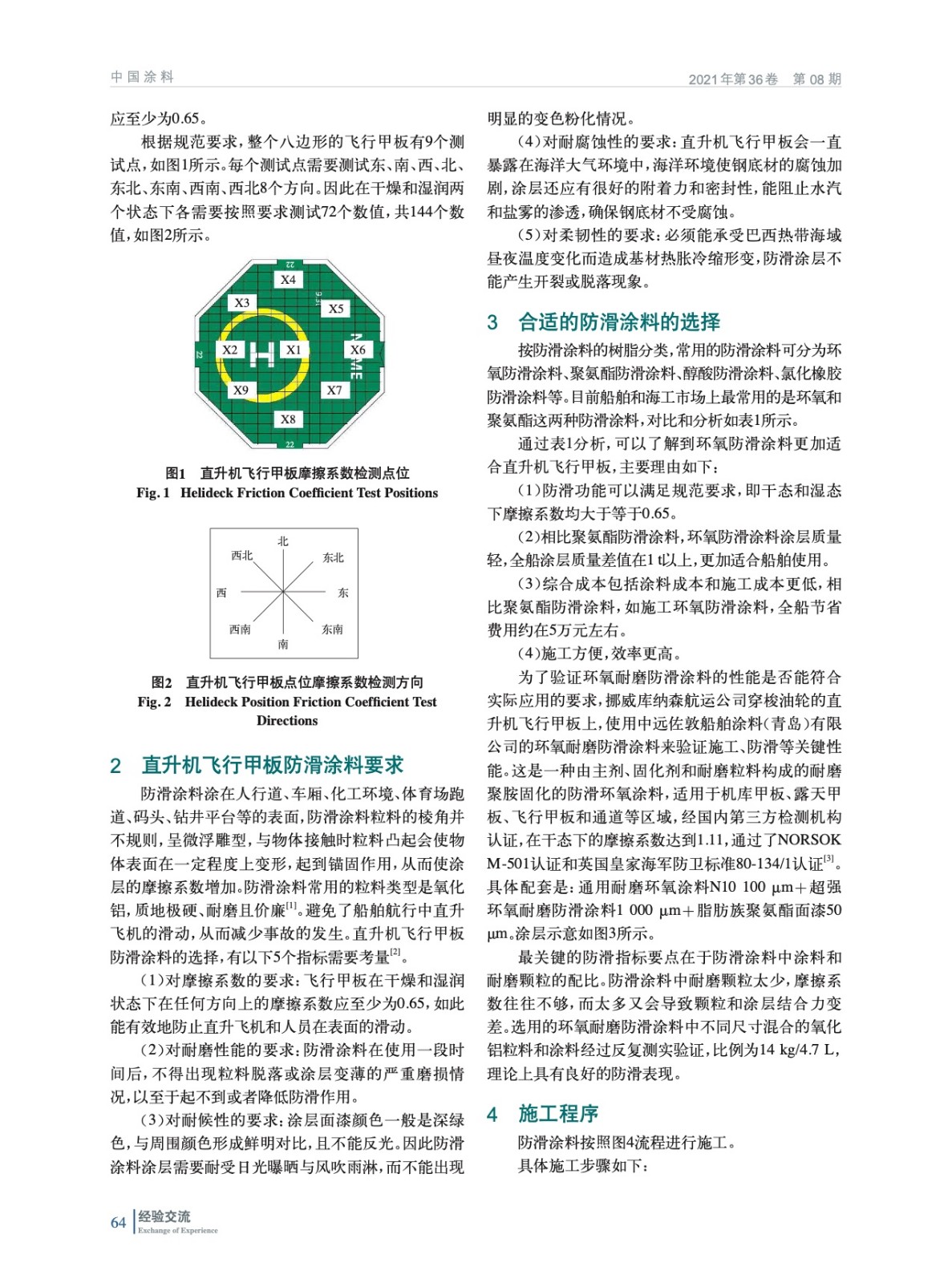 摘要:介紹了直升機飛行甲板的涂層防滑標準,防滑涂料應用在直升機飛行甲板的要求,如何選擇合適的防滑涂料,現(xiàn)場防滑涂料施工要點,以及進行摩擦系數(shù)檢測來驗證涂層是否符合防滑標準要求。