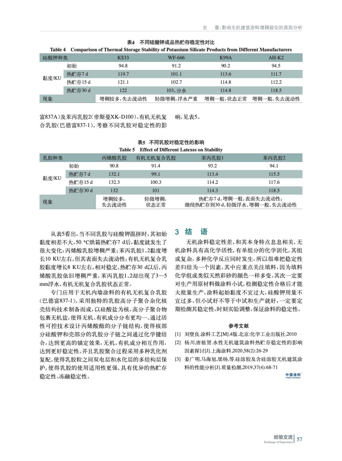 摘要:以硅酸鉀體系無(wú)機(jī)涂料為例,分析水性無(wú)機(jī)建筑涂料增稠膠化原因,主要從顏填料、硅酸鉀、乳膠等方面進(jìn)行分析,通過(guò)實(shí)驗(yàn)驗(yàn)證,得出如何選擇原料使體系穩(wěn)定性最佳。