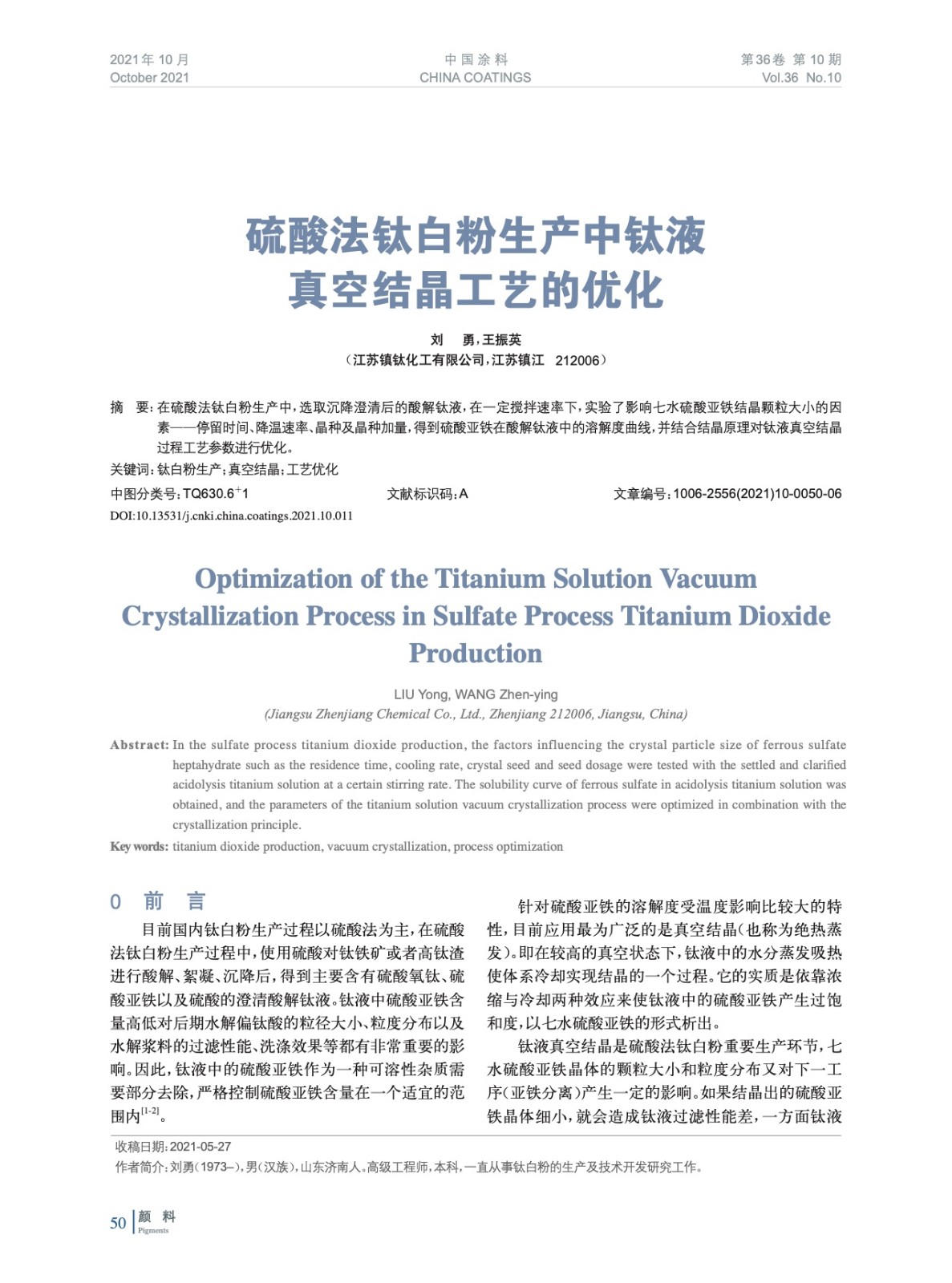 硫酸法鈦白粉生產中鈦液真空結晶工藝的優化