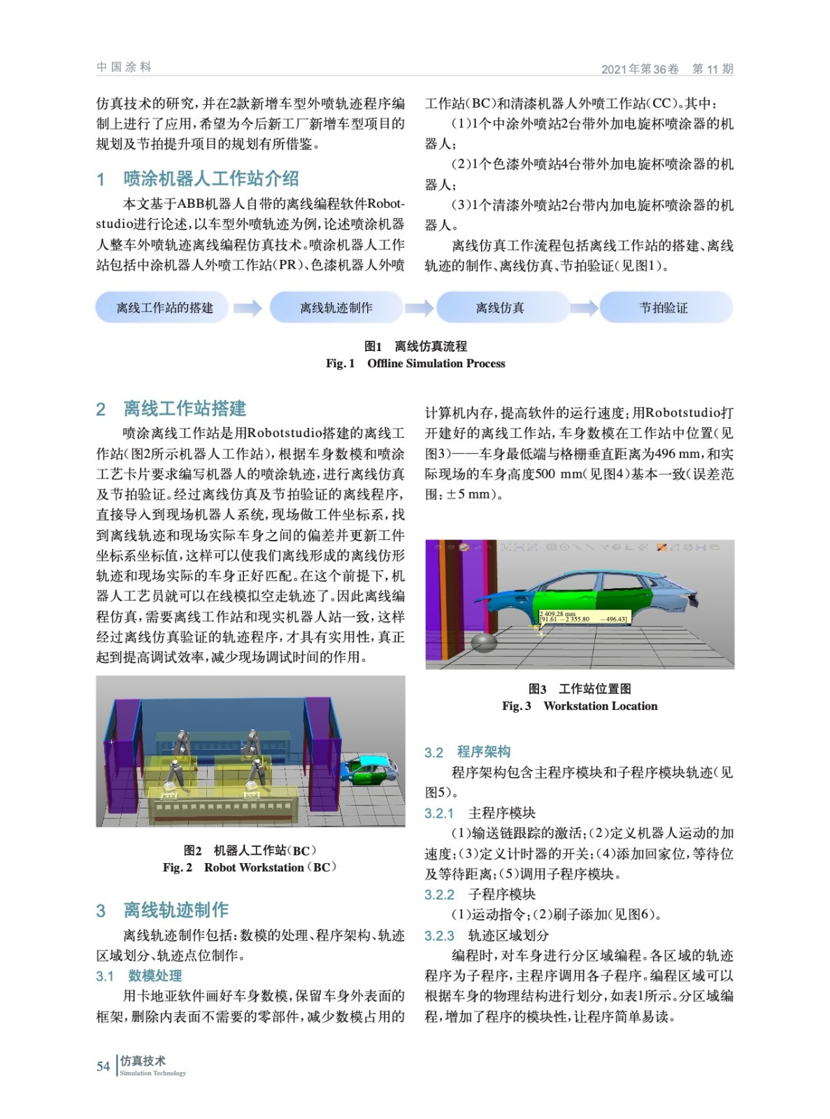 摘要:噴涂機(jī)器人整車軌跡離線編程仿真技術(shù)可以有效提高在線調(diào)試的效率,縮短在線調(diào)試時(shí)間。結(jié)合在某汽車公司新增車型項(xiàng)目的噴涂軌跡程序編制及調(diào)試中的應(yīng)用經(jīng)驗(yàn),以某車型外噴軌跡為例,介紹了噴涂機(jī)器人工作站,從Robotstudio工作站的搭建、離線編程、離線仿真、節(jié)拍驗(yàn)證4個(gè)方面對(duì)整車外噴軌跡離線編程仿真技術(shù)進(jìn)行論述。