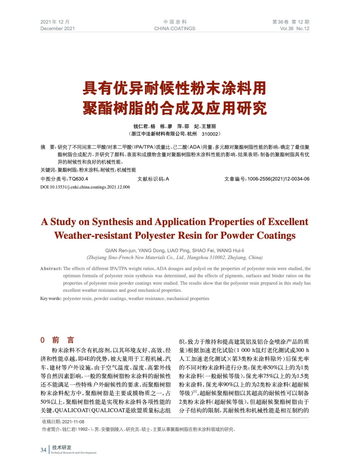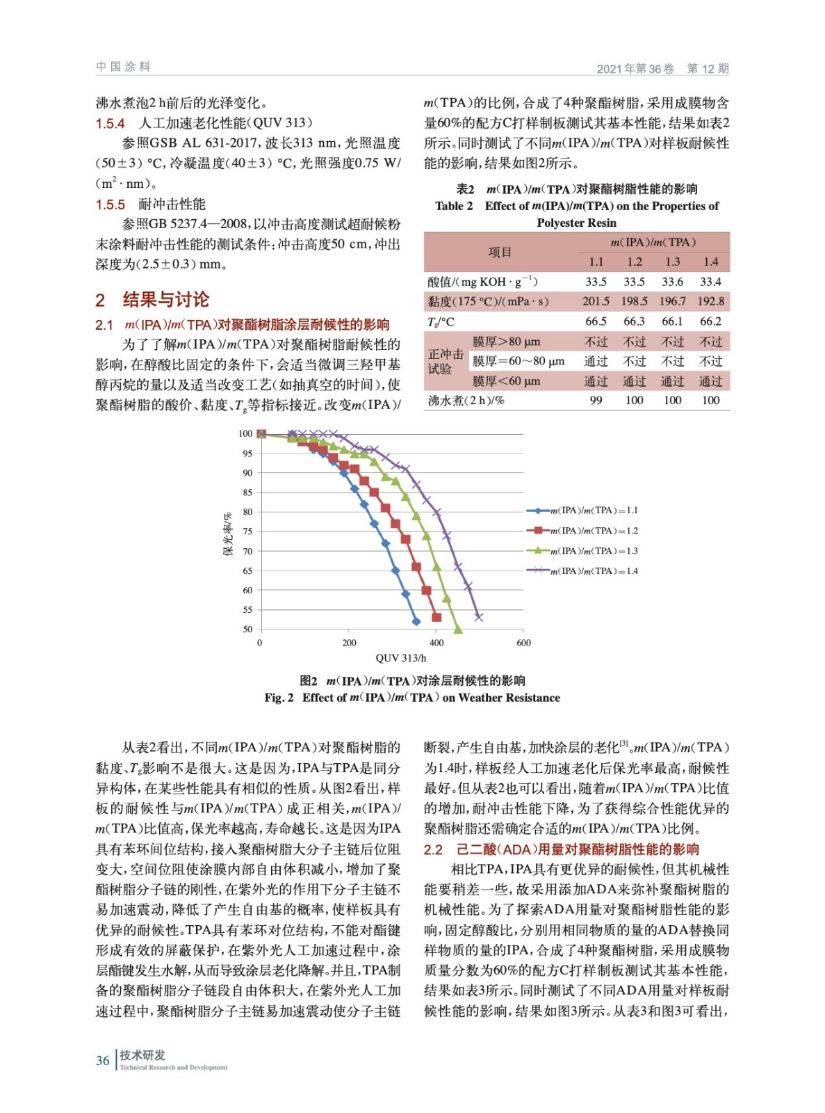 具有優(yōu)異耐候性粉末涂料用聚酯樹脂的合成及應(yīng)用研究
