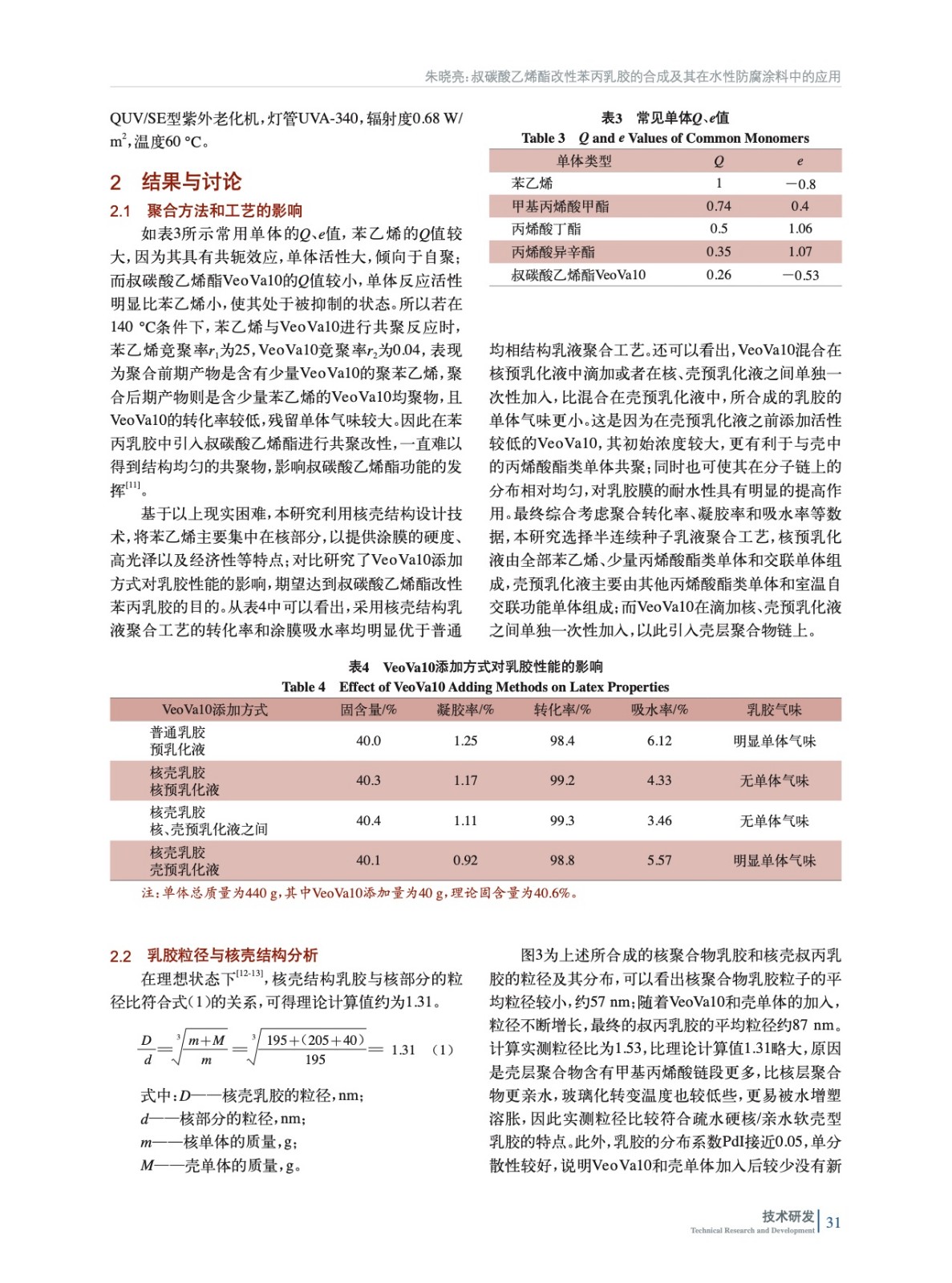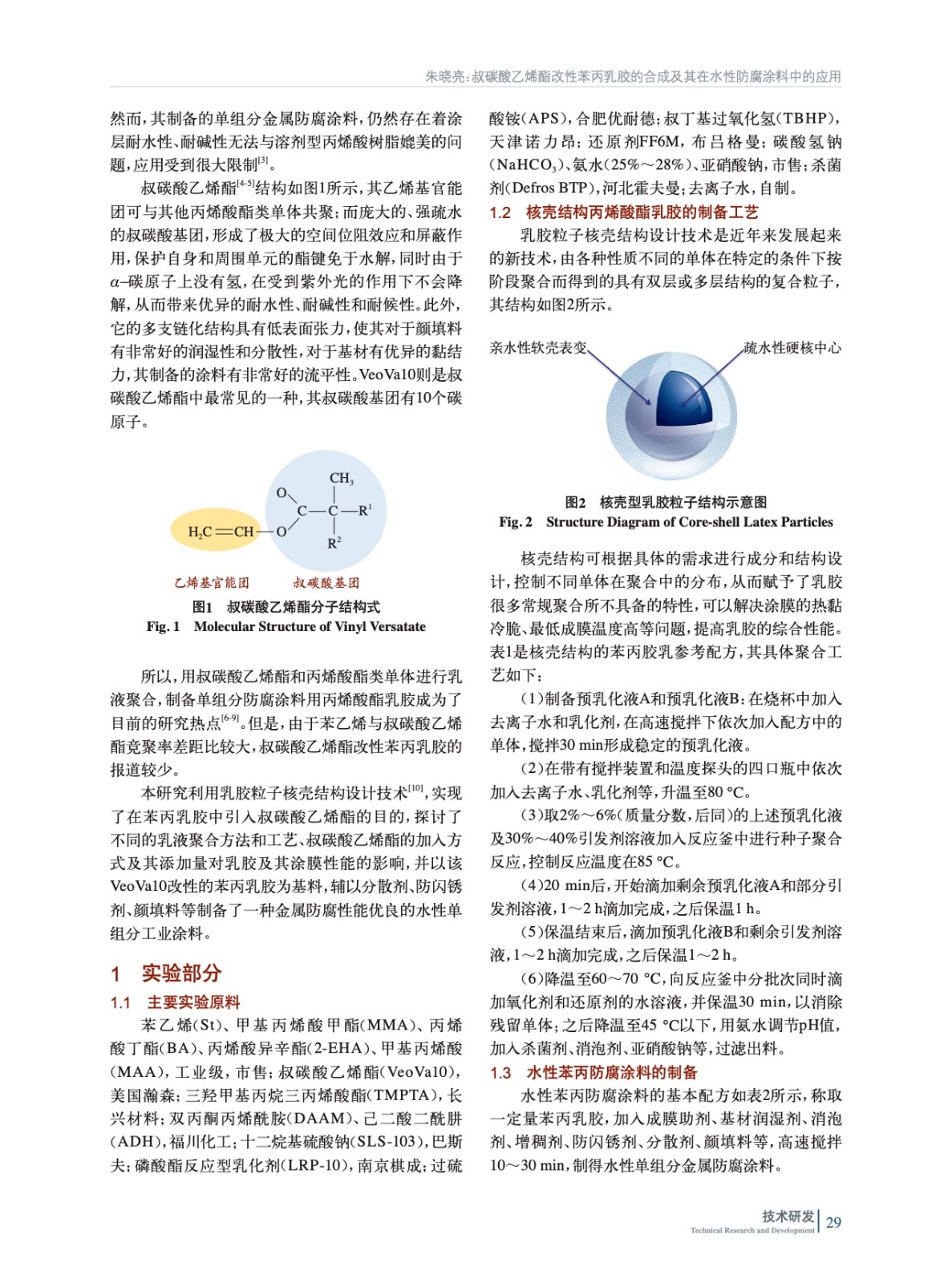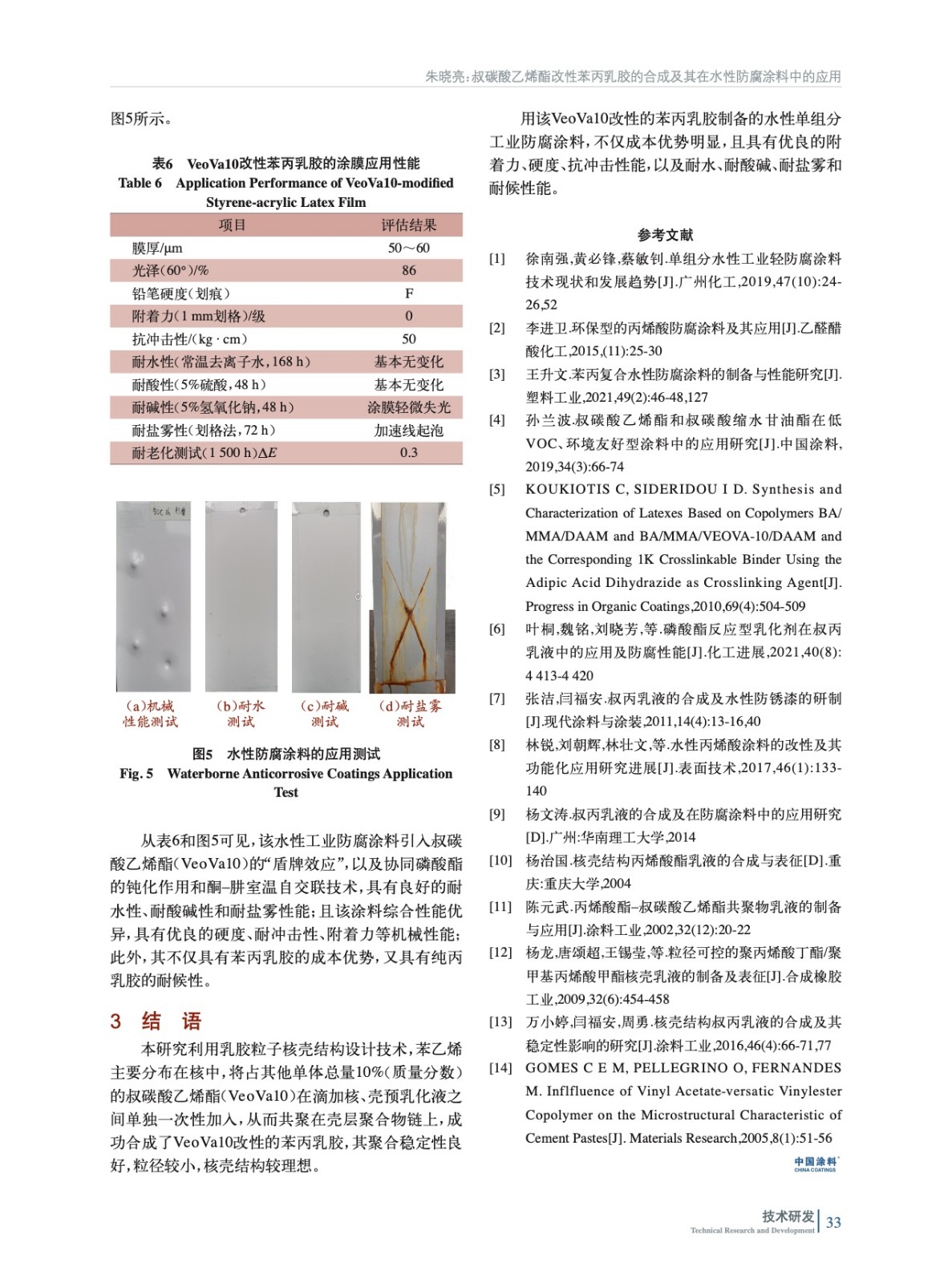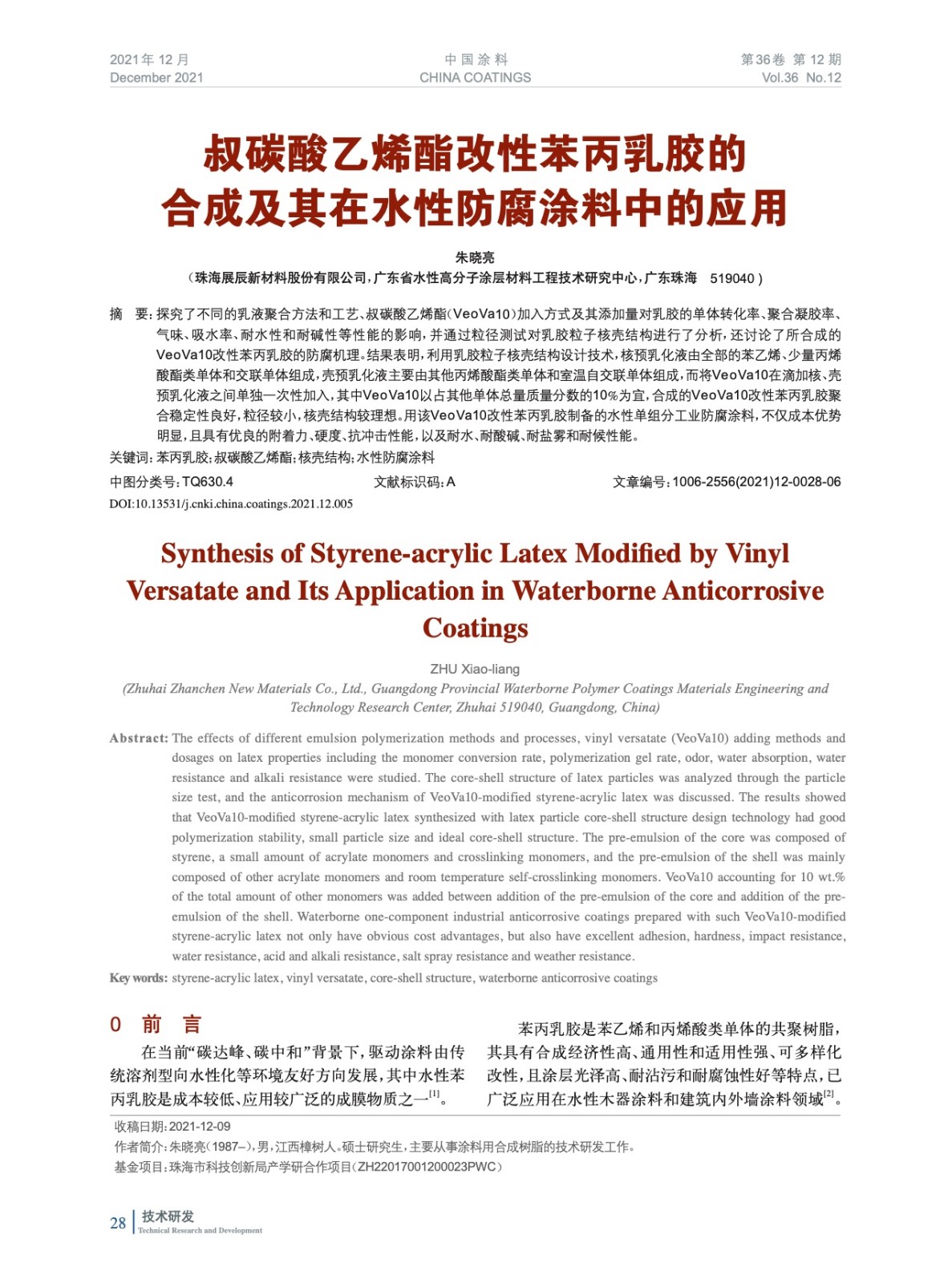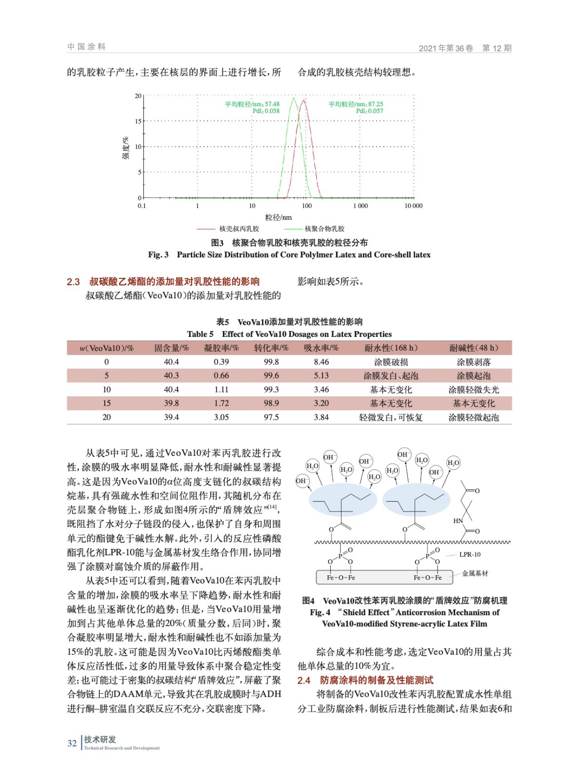 叔碳酸乙烯酯改性苯丙乳膠的合成及其在水性防腐涂料中的應用