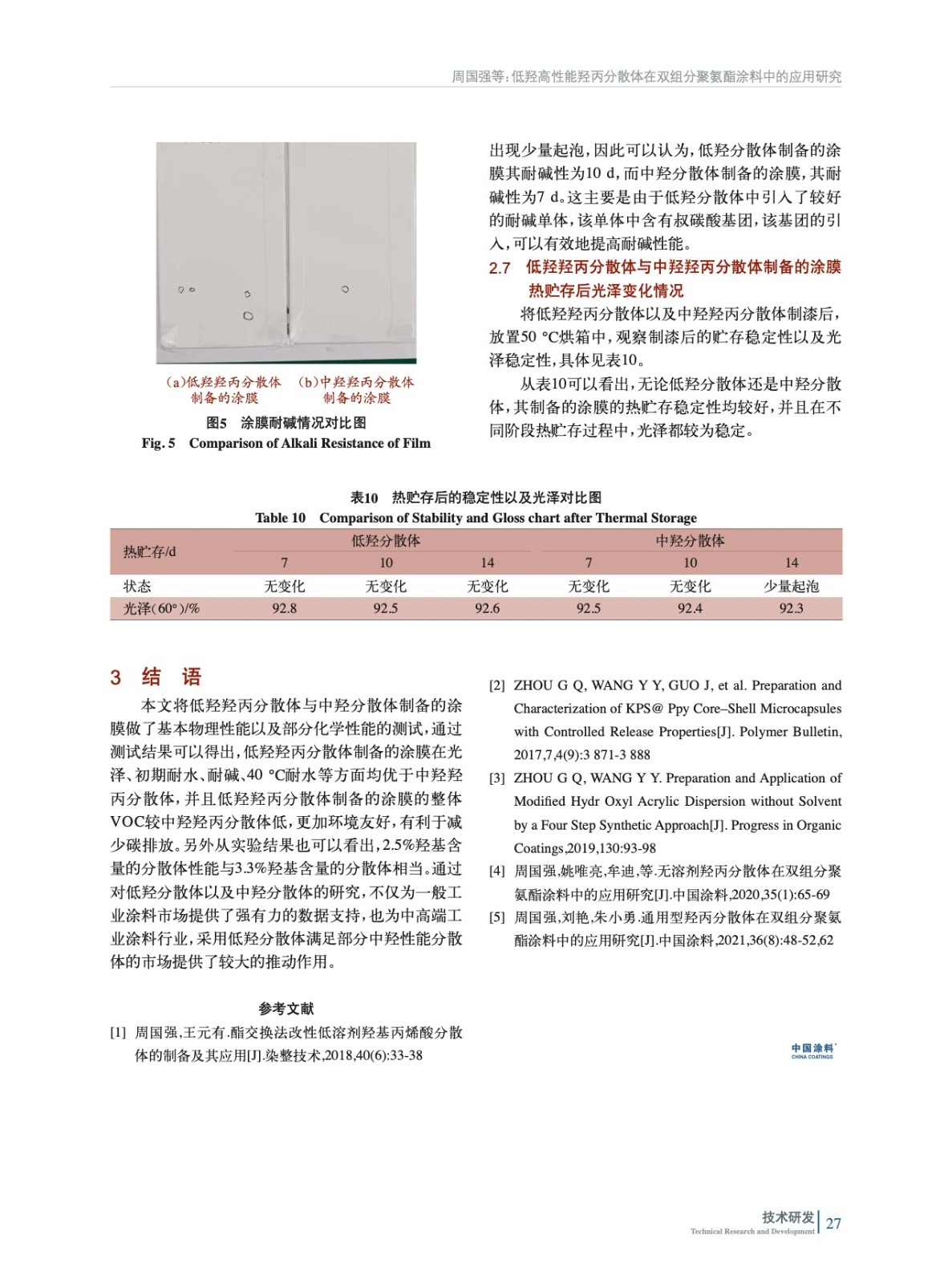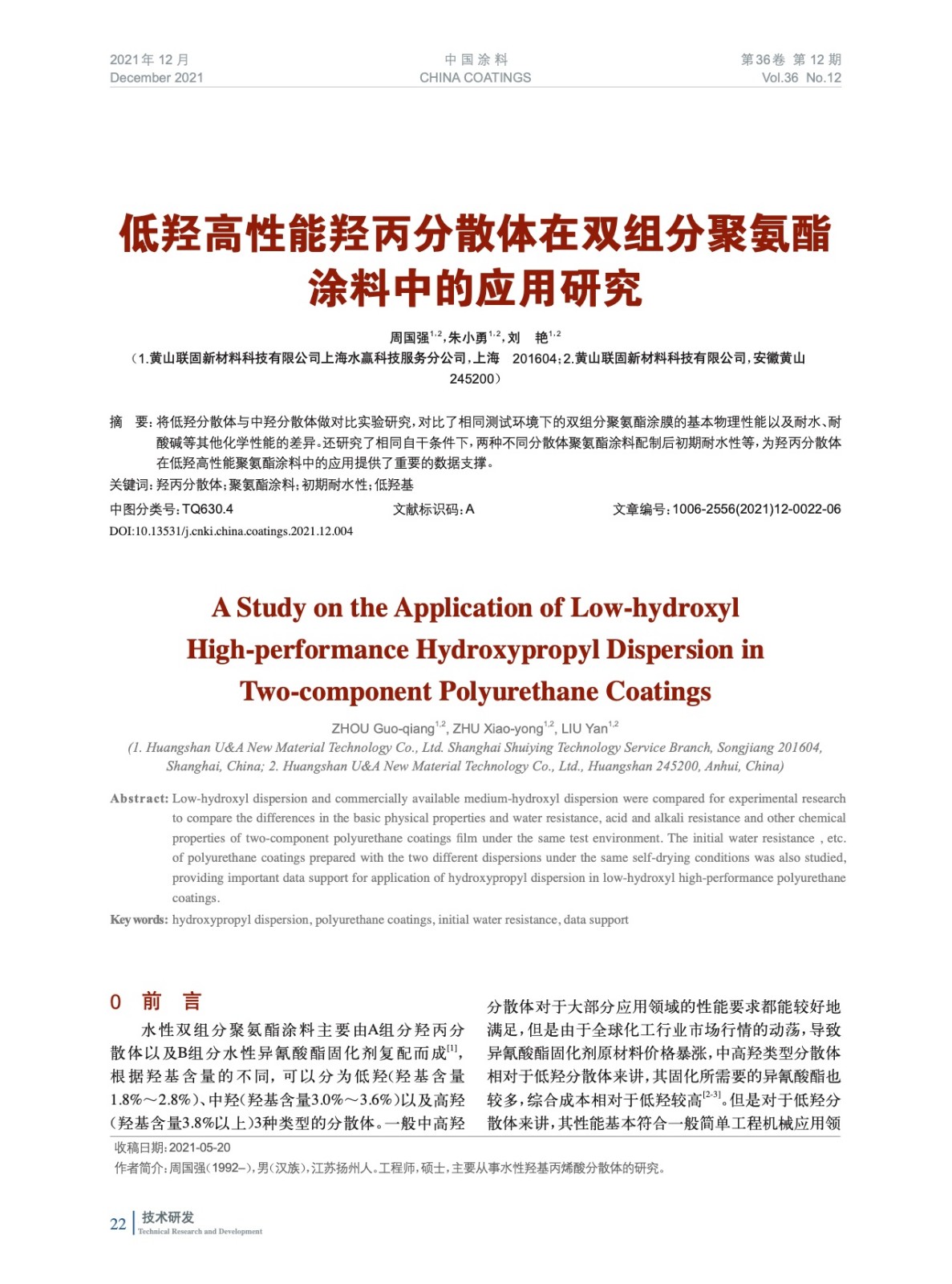 低羥高性能羥丙分散體在雙組分聚氨酯涂料中的應用研究