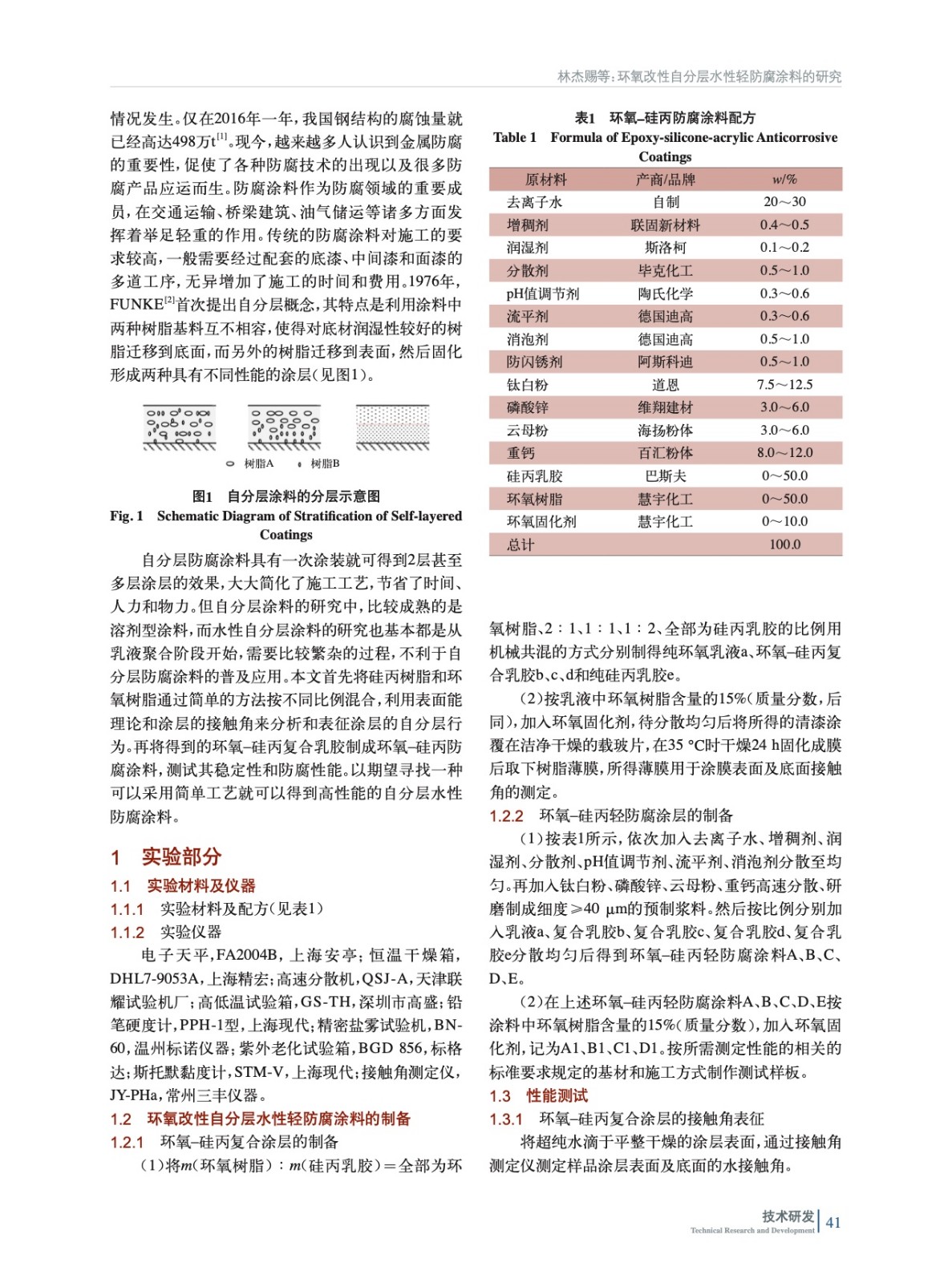 環氧改性自分層水性輕防腐涂料的研究