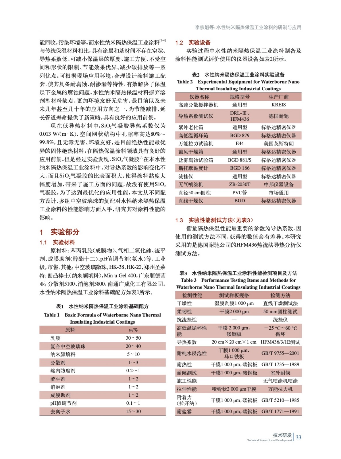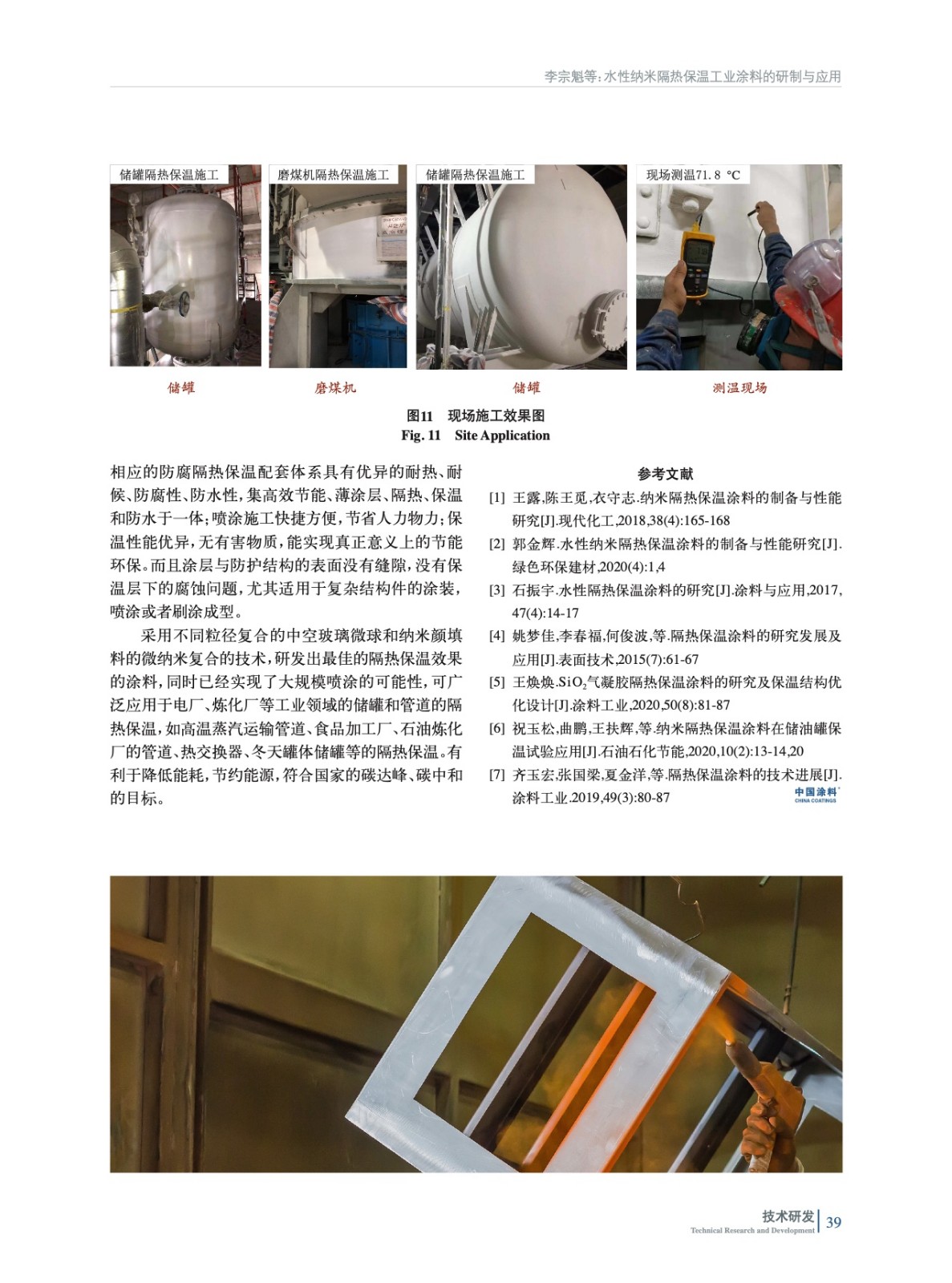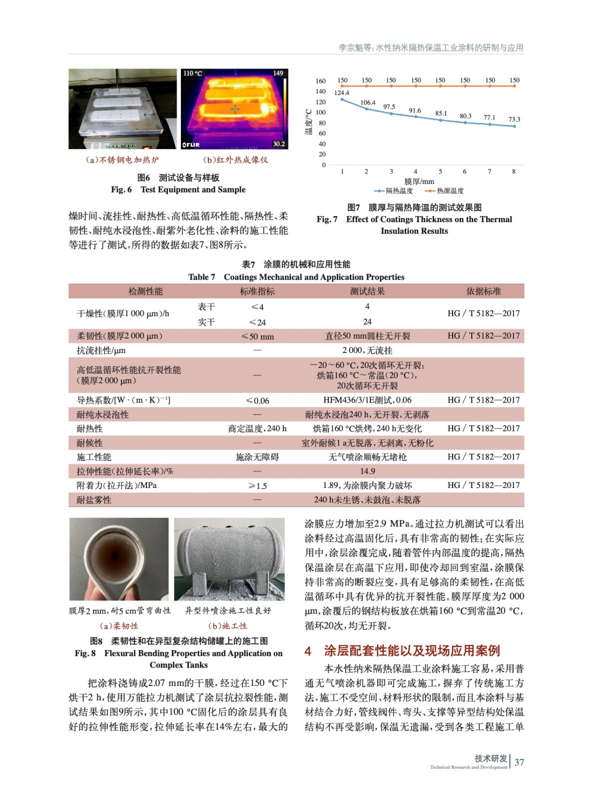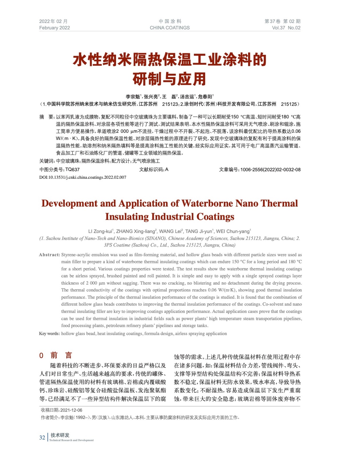 摘要:以苯丙乳液為成膜物,復配不同粒徑中空玻璃珠為主要填料,制備了一種可以長期耐受150 ℃高溫、短時間耐受180 ℃高溫的隔熱保溫涂料。性能測試結果表明,本水性隔熱保溫涂料可采用無氣噴涂、刷涂和輥涂,單道噴涂2 000 μm不流掛,干燥過程中不開裂、不起泡、不脫落,具備良好的隔熱保溫性能。