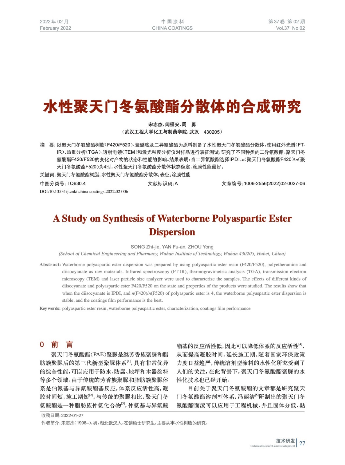 本文系作者@宋志杰,閆福安,周 勇 授權中國涂料網發表,并經中國涂料網編輯,未經允許不得轉載,如需轉載請聯系chinacoatingnet@vip.163.com