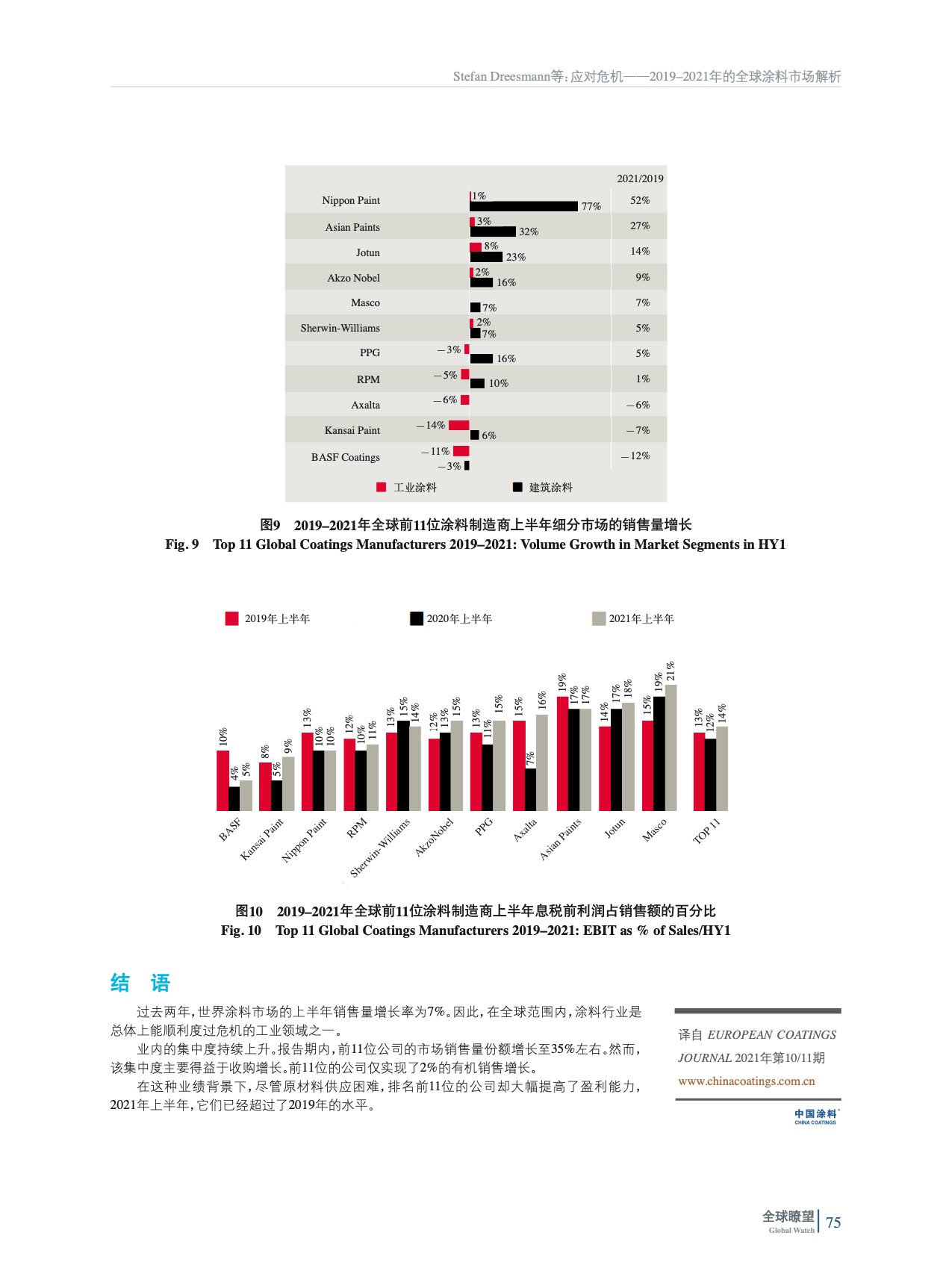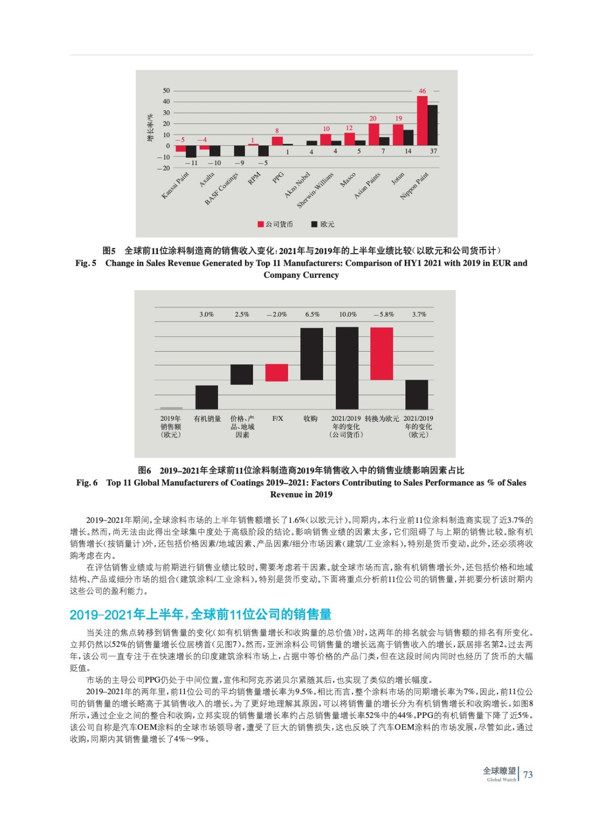摘要:編者按:過去兩年,在涂料行業(yè)的前11位涂料制造商中,哪些公司能夠最好地應(yīng)對新冠肺炎疫情危機(jī)?在涂料行業(yè)跨國公司的2021年上半年財務(wù)報告中,銷售增長令人眼花繚亂。那么,“一切都好起來了”嗎?本文將進(jìn)一步深入研究這些公司的銷售額、銷售量,分析“有機(jī)銷售增長”和“收購”,以及“建筑涂料”和“工業(yè)涂料”細(xì)分市場的相對變化。最后,將快速了解這些公司的盈利能力。