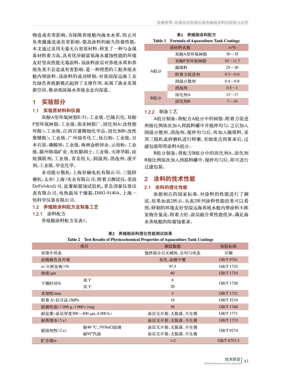 環(huán)境友好型深遠(yuǎn)海養(yǎng)殖艙涂料的研制與應(yīng)用