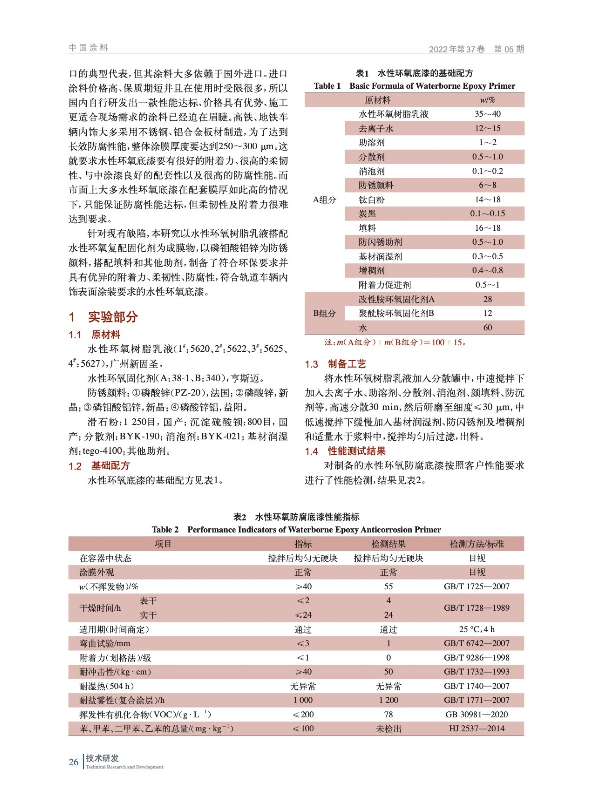 軌道車(chē)輛內(nèi)飾用水性環(huán)氧涂料的研究