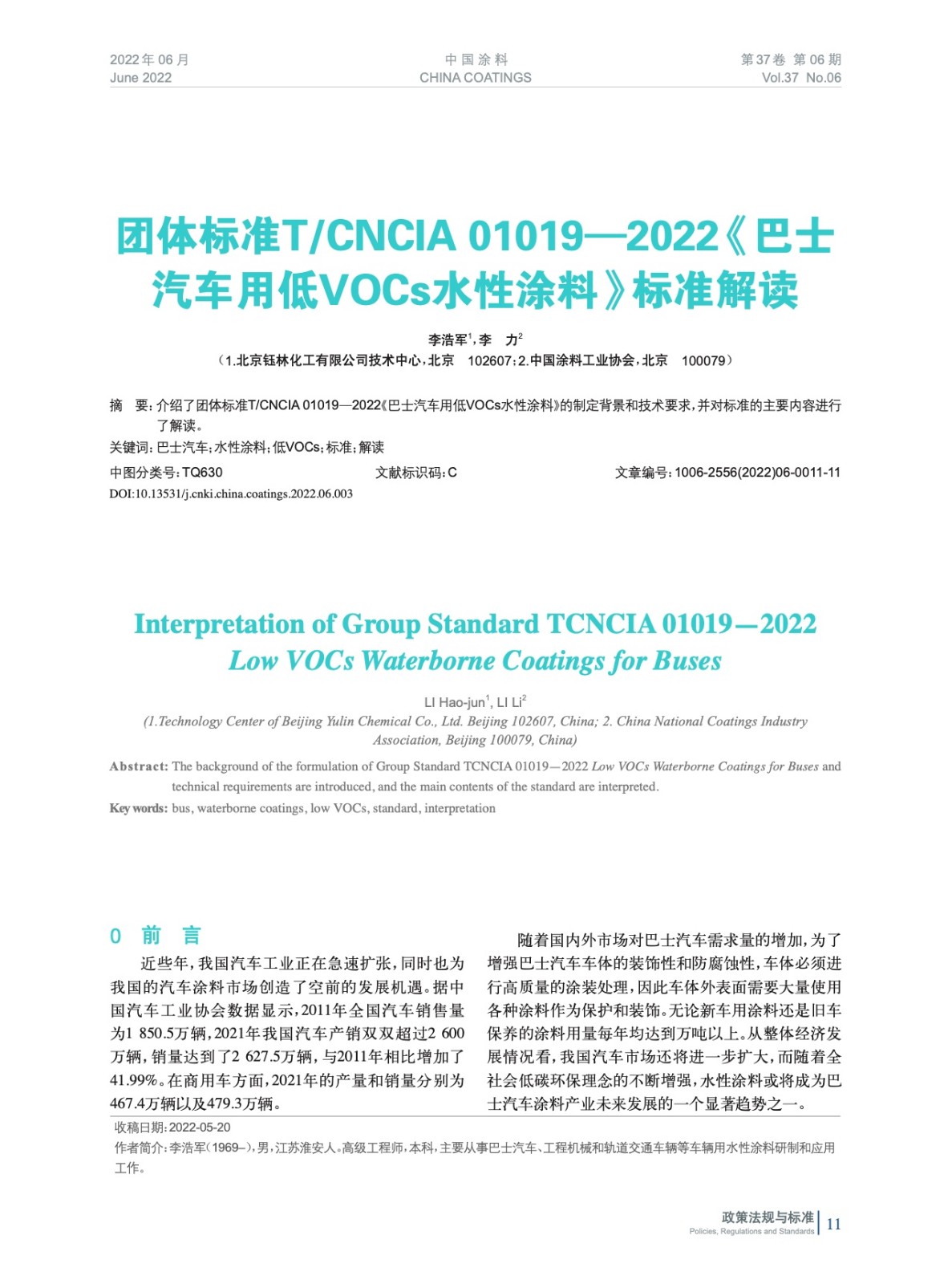 團體標準T/CNCIA 01019—2022《巴士汽車用低VOCs水性涂料》 標準解讀