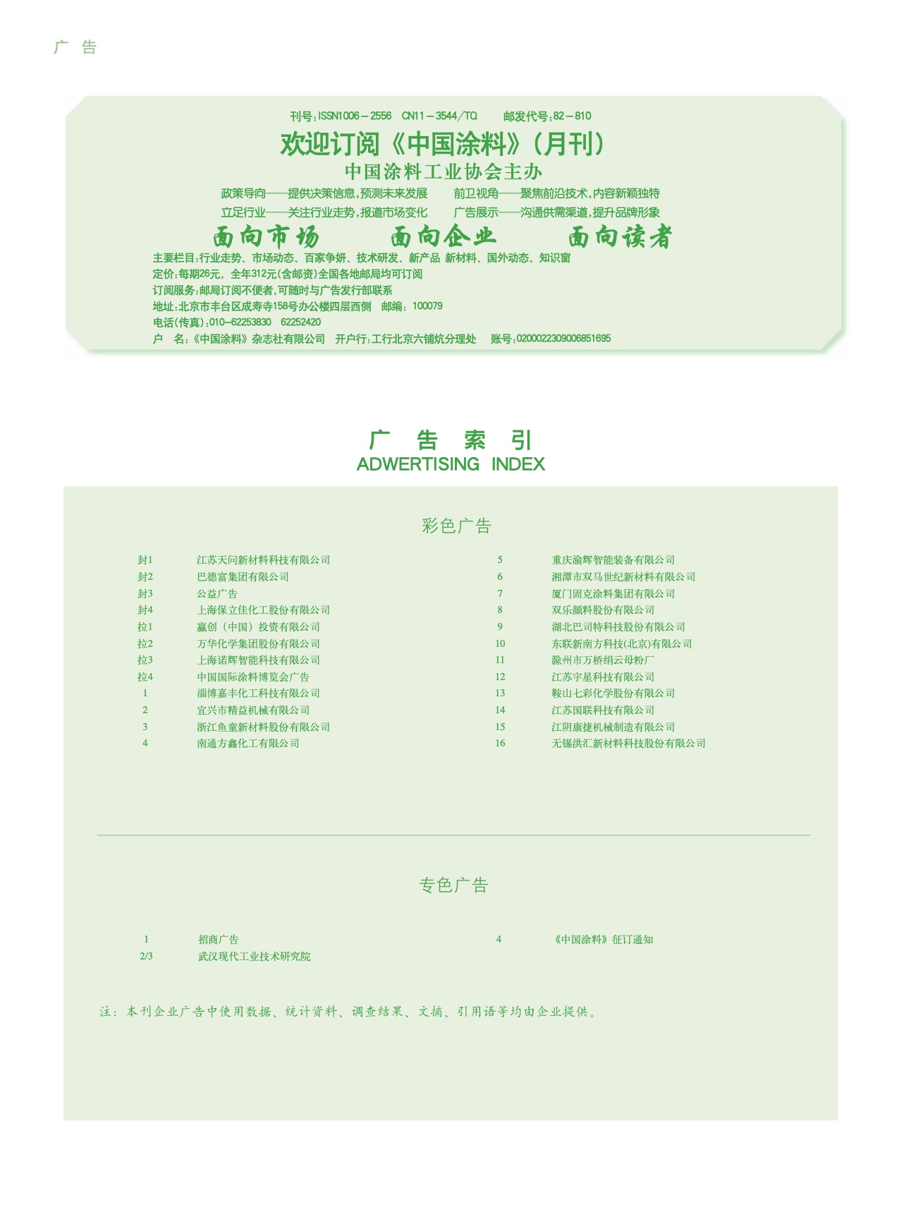 招商廣告、武漢現(xiàn)代、《中國涂料》征訂通知