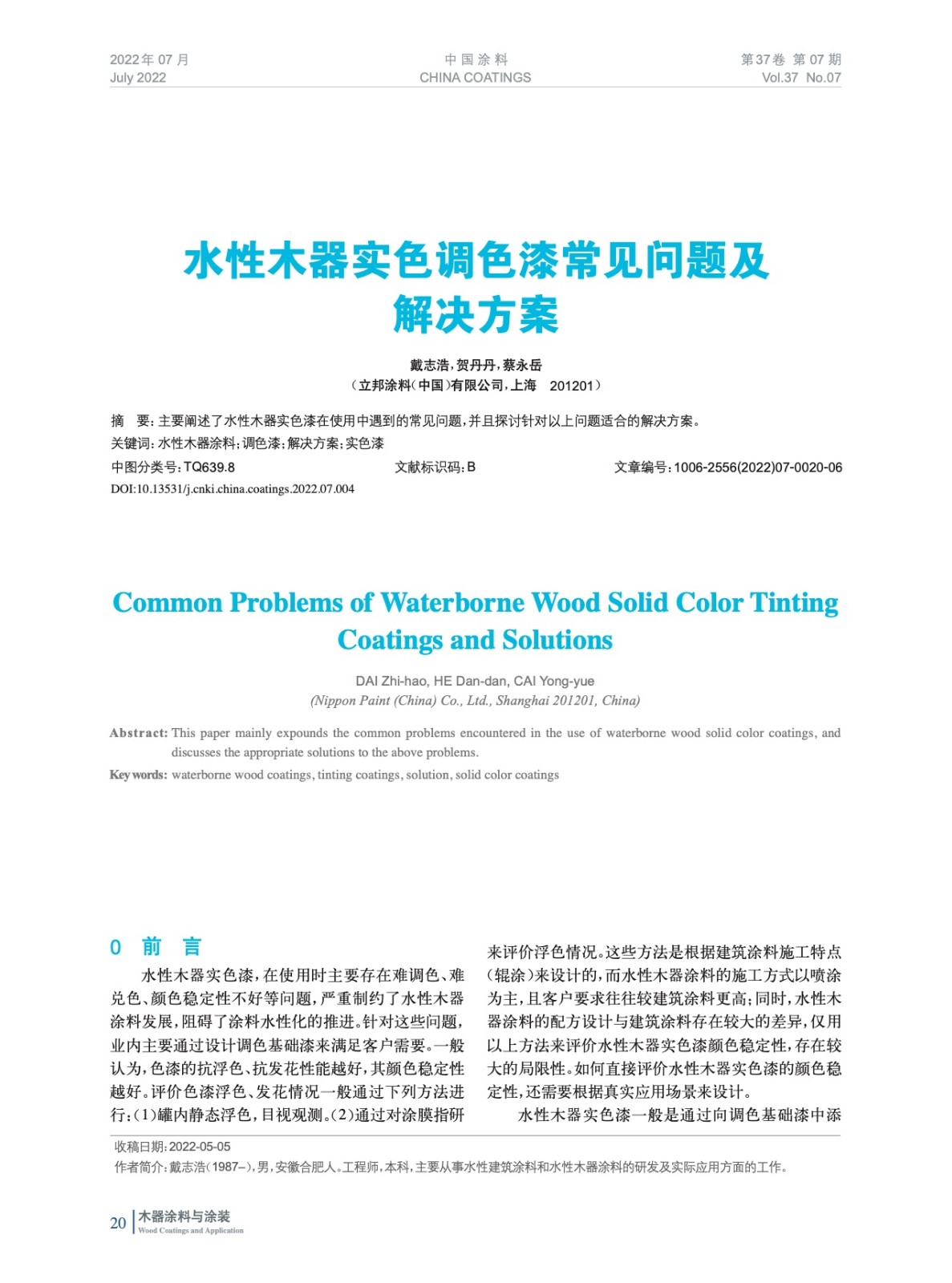 本文系作者@戴志浩,賀丹丹,蔡永岳 授權中國涂料網發表,并經中國涂料網編輯,未經允許不得轉載,如需轉載請聯系chinacoatingnet@vip.163.com