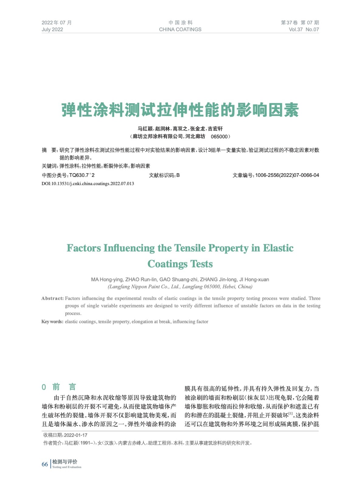 摘要:研究了彈性涂料在測試?yán)煨阅苓^程中對實驗結(jié)果的影響因素,設(shè)計3組單一變量實驗,驗證測試過程的不穩(wěn)定因素對數(shù)據(jù)的影響差異。
