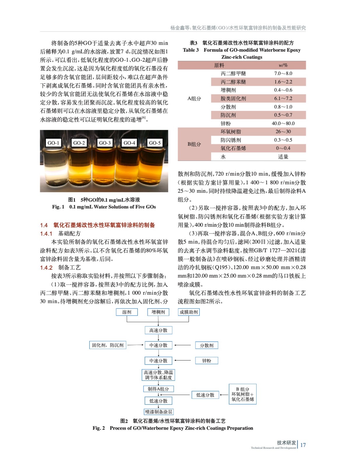 氧化石墨烯(GO)/水性環(huán)氧富鋅涂料的制備及性能研究