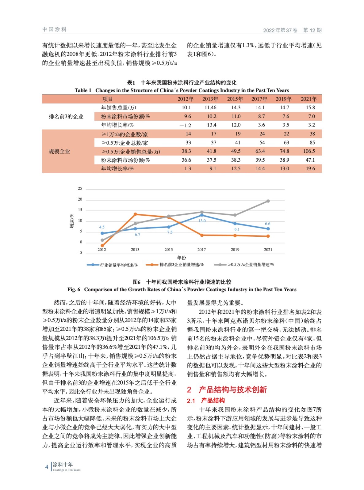 以盡可能詳實的數據闡述了十年來我國粉末涂料行業的發展情況,產業規模大幅提升,產業結構得到優化;分析了粉末涂料技術創新取得的進步以及涂裝行業粉末化面臨的困局;提出了上游產業鏈亟待解決的關鍵技術和制粉設備領域取得的進展與面臨的挑戰。