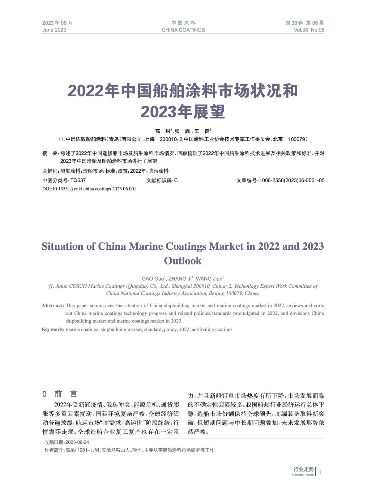 2022年中國船舶涂料市場(chǎng)狀況和2023年展望