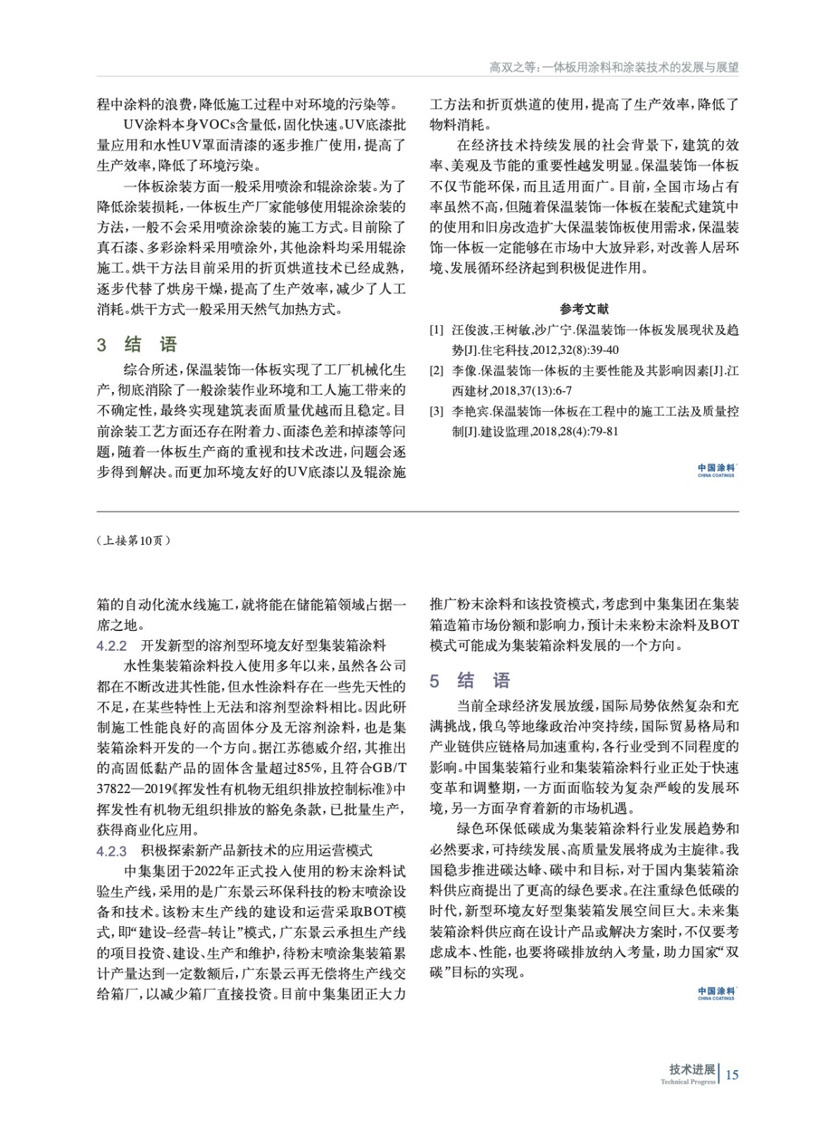 簡述了我國保溫裝飾一體板用涂料的技術現狀,闡述了一體板用涂料和涂裝技術存在的問題和發展趨勢,最后對將來的發展進行了展望。