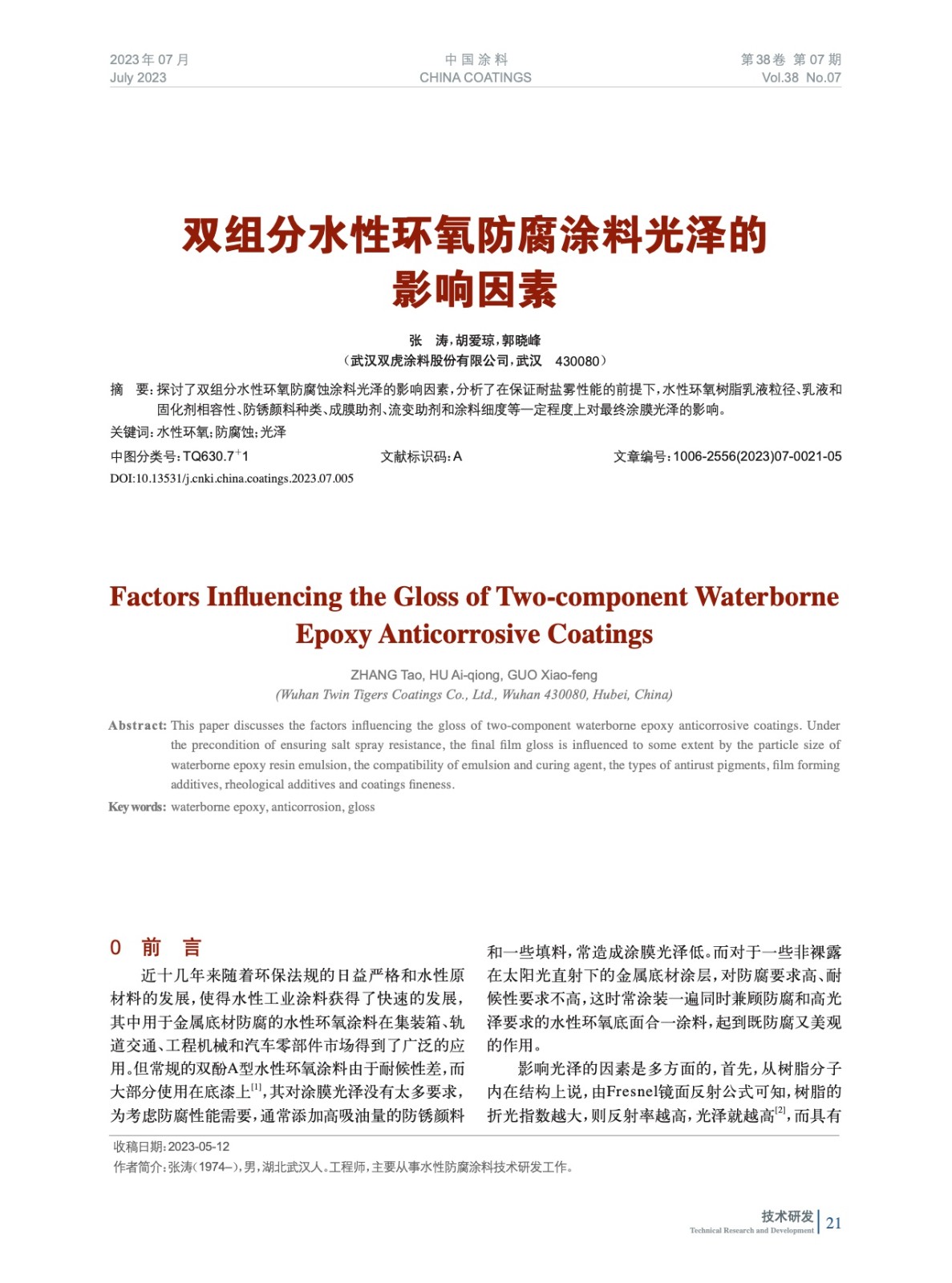 本文系作者@張 濤,胡愛瓊,郭曉峰 授權中國涂料網發表,并經中國涂料網編輯,未經允許不得轉載,如需轉載請聯系chinacoatingnet@vip.163.com