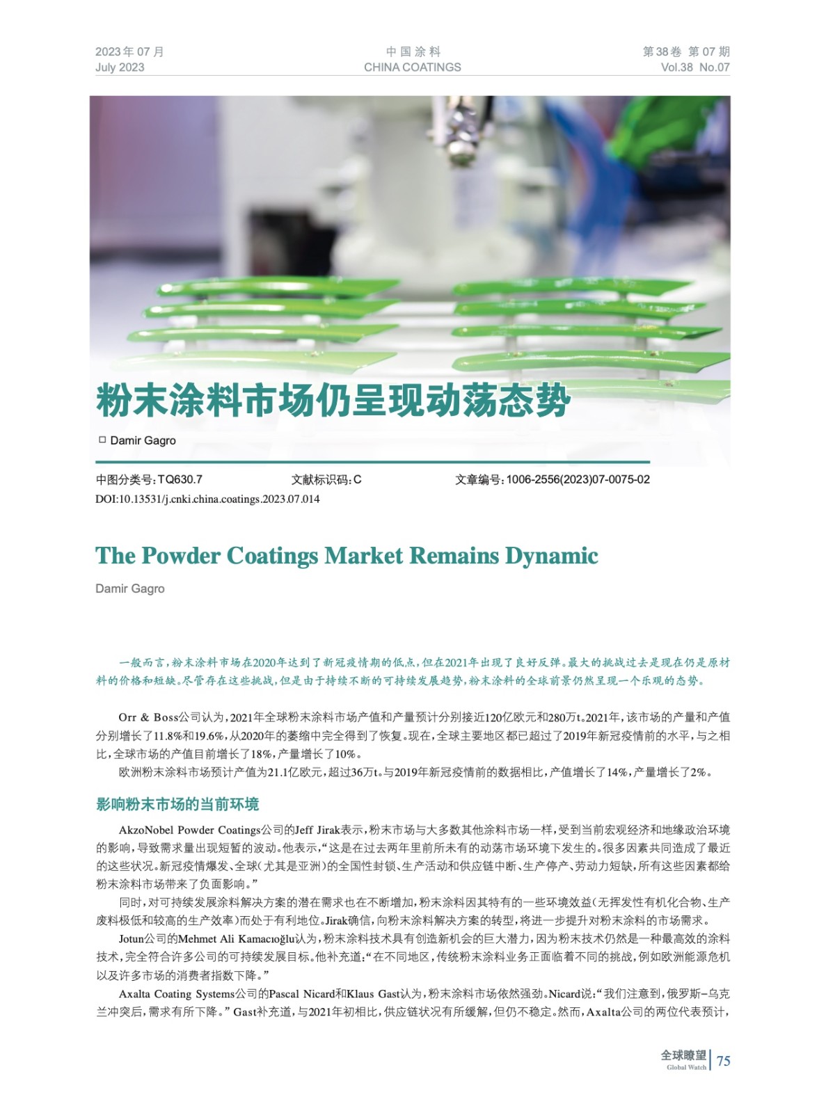 一般而言,粉末涂料市場在2020年達到了新冠疫情期的低點,但在2021年出現了良好反彈。最大的挑戰過去是現在仍是原材料的價格和短缺。盡管存在這些挑戰,但是由于持續不斷的可持續發展趨勢,粉末涂料的全球前景仍然呈現一個樂觀的態勢。