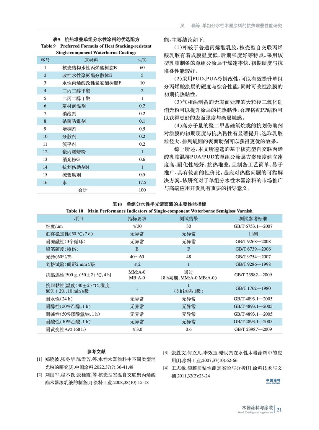為了開發具備優異初期抗熱堆疊的單組分水性涂料,從成膜物、蠟粉、消光粉和抗劃傷手感劑著手,通過比較不同涂層在不同養護時長下的硬度與抗熱堆疊效果,探討單組分水性涂層的抗黏調控策略及其實現機制,為水性木器市場突破熱堆疊難題提供一個可行的技術方案。