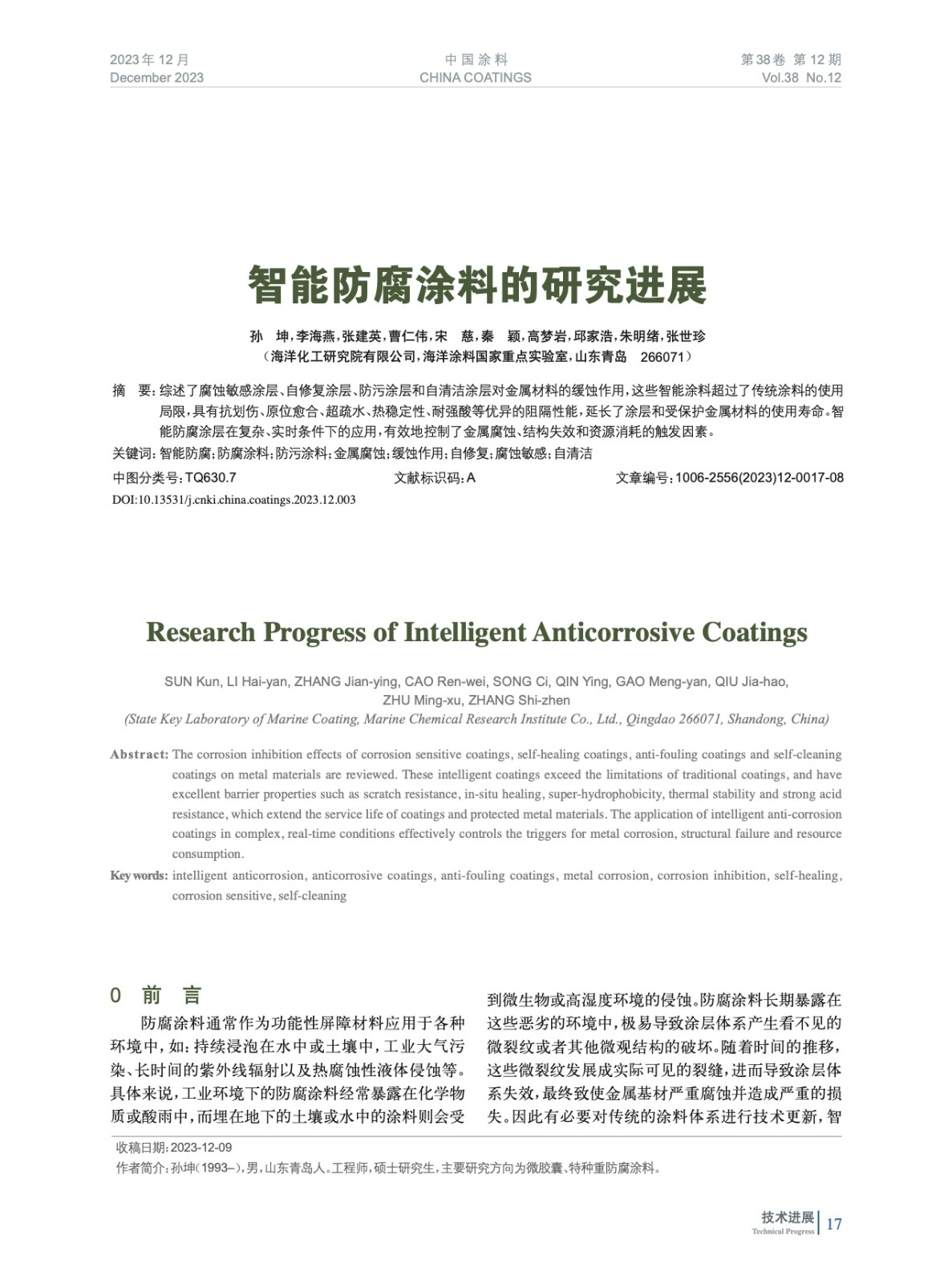 本文系作者@孫 坤,李海燕,張建英,曹仁偉,宋 慈,秦 穎,高夢(mèng)巖,邱家浩,朱明緒,張世珍 授權(quán)中國(guó)涂料網(wǎng)發(fā)表,并經(jīng)中國(guó)涂料網(wǎng)編輯,未經(jīng)允許不得轉(zhuǎn)載,如需轉(zhuǎn)載請(qǐng)聯(lián)系chinacoatingnet@vip.163.com