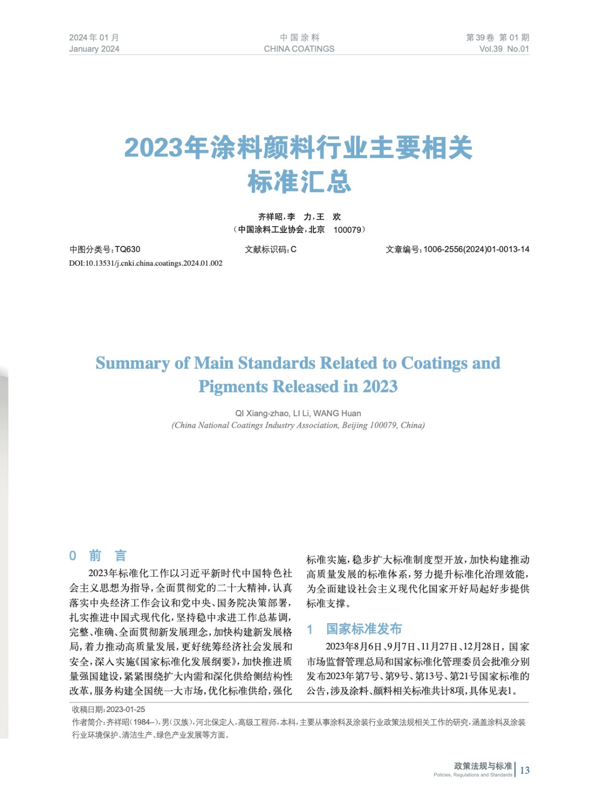 2023年涂料顏料行業(yè)主要相關(guān)標準匯總