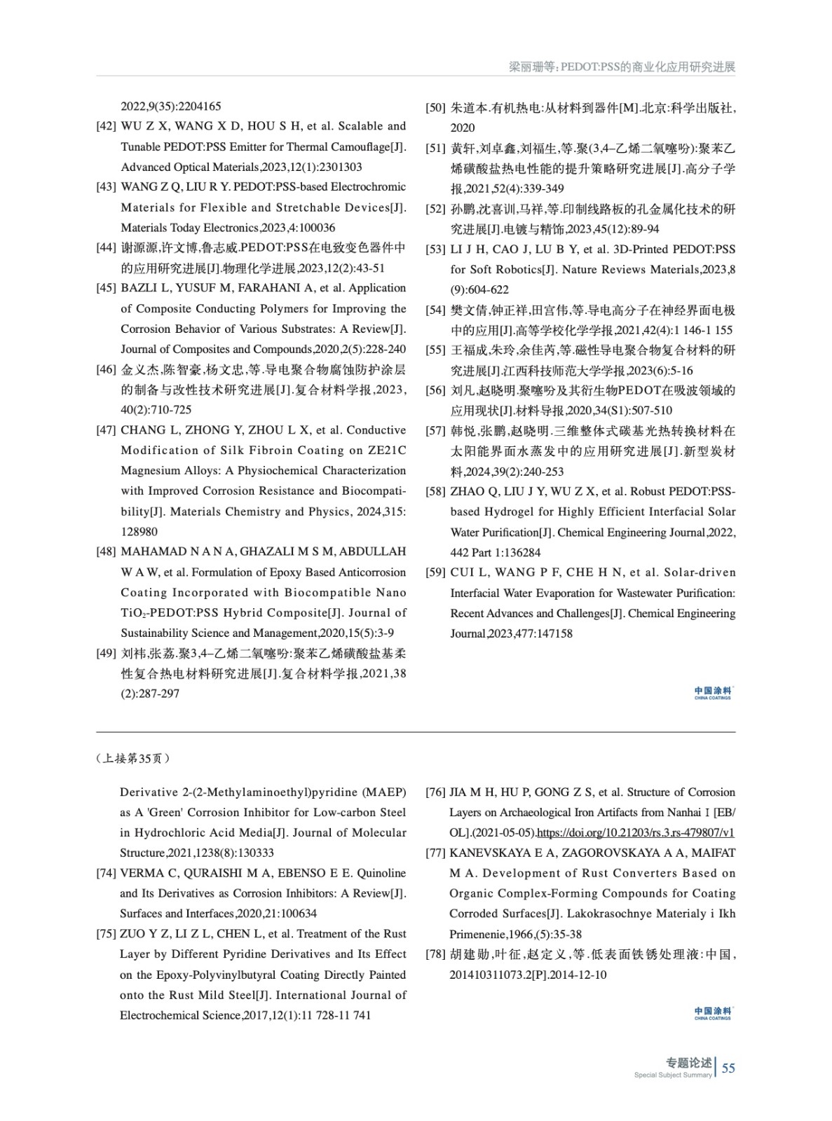 摘要:聚(3,4–乙撐二氧噻吩):聚苯乙烯磺酸鹽(PEDOT:PSS)水性分散體是一種基于規模化氧化聚合技術生產的高附加值導電液,解決了本征導電聚合物PEDOT的加工性,其固相材料形態多樣且具有優異的光學、電學、電化學、力學、化學和熱學穩定性、生物兼容能力等性能,在有機電子領域應用廣泛,且長期處于學術研究熱點和前沿。簡述了PEDOT:PSS的制備方法并根據發展階段全面分析厘清了其應用研究進展,以為學術界和業界提供借鑒,為繼續推動PEDOT:PSS的商業化應用和國內產學研合作突破技術壁壘提供有益幫助。