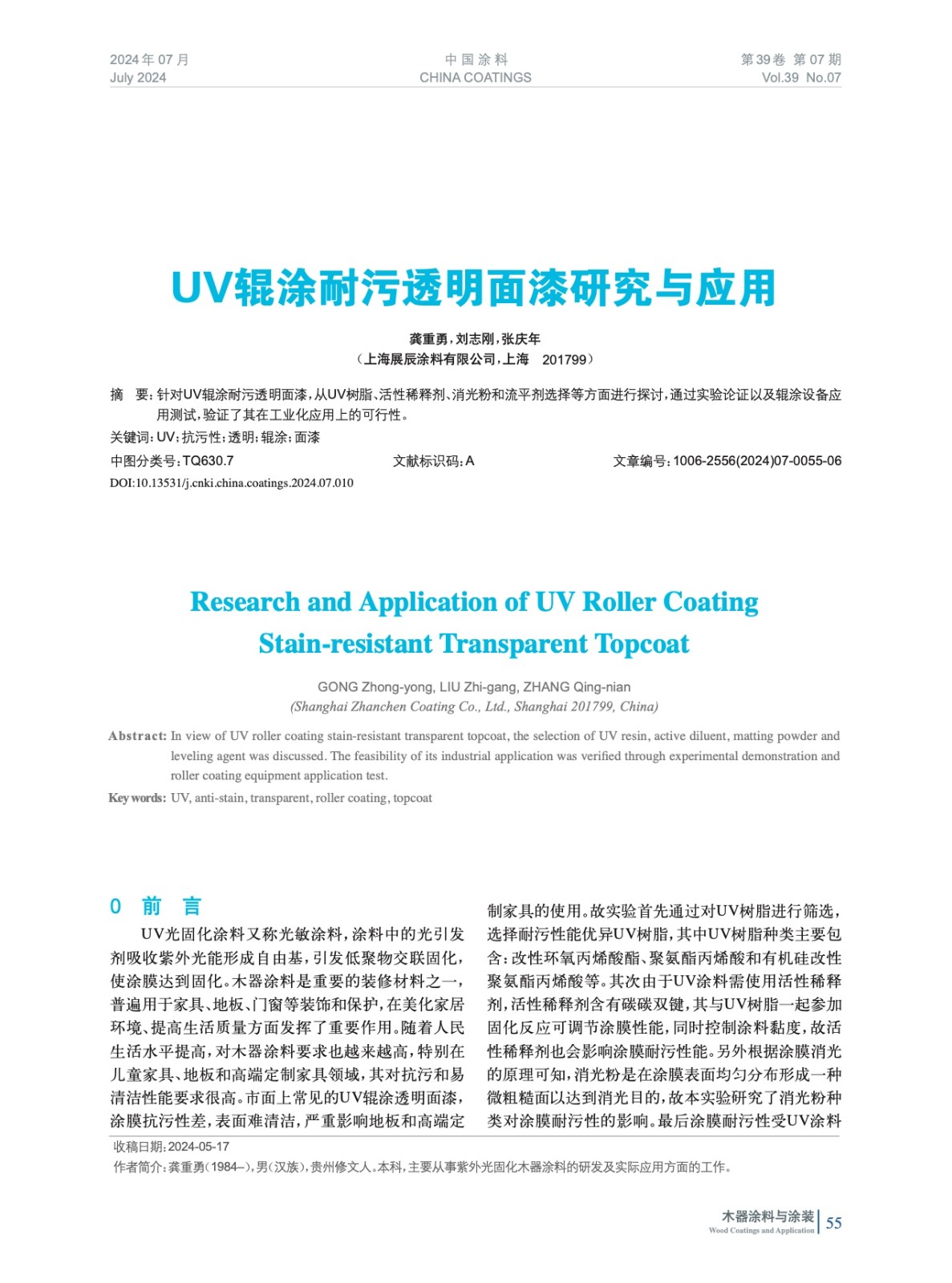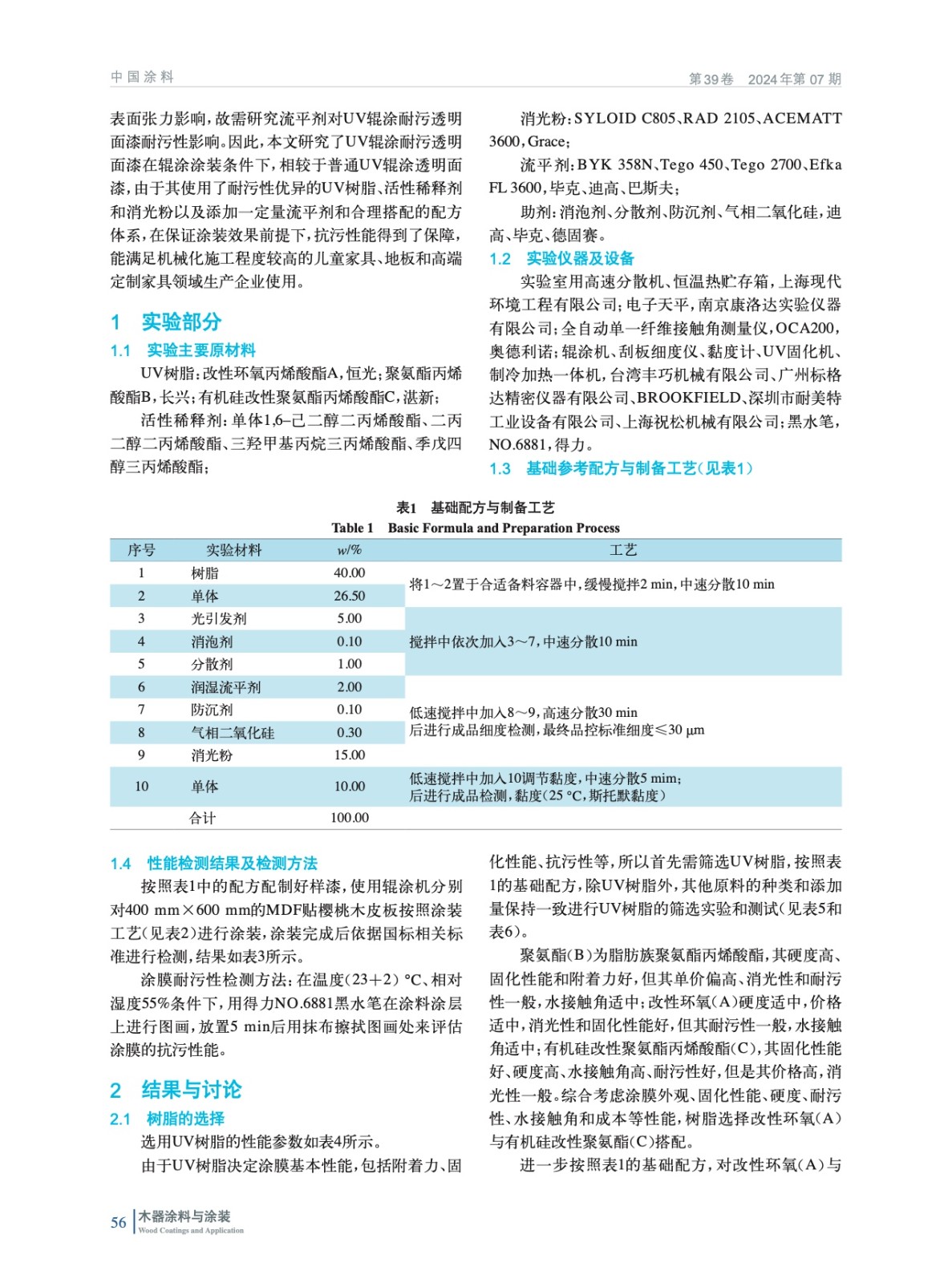 對UV輥涂耐污透明面漆,從UV樹脂、活性稀釋劑、消光粉和流平劑選擇等方面進行探討,通過實驗論證以及輥涂設備應用測試,驗證了其在工業(yè)化應用上的可行性。