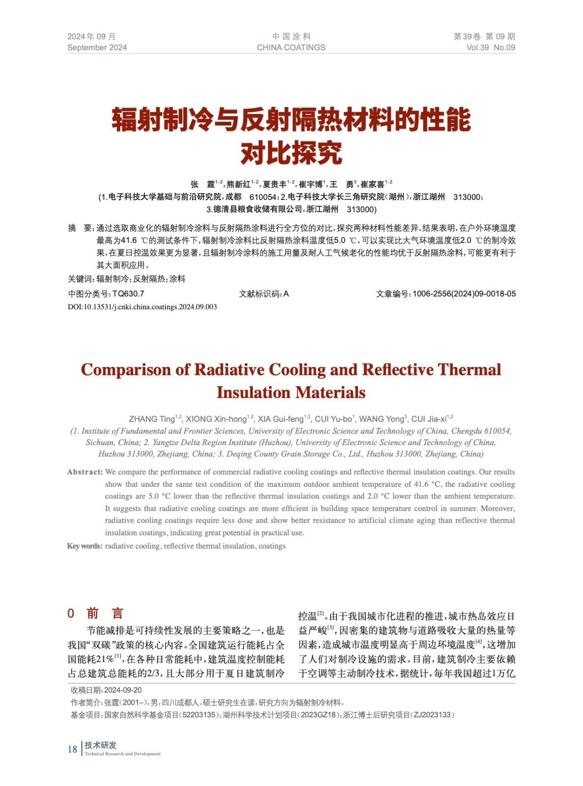 果,在夏日控溫效果更為顯著,且輻射制冷涂料的施工用量及耐人工氣候老化的性能均優(yōu)于反射隔熱涂料,可能更有利于其大面積應(yīng)用。