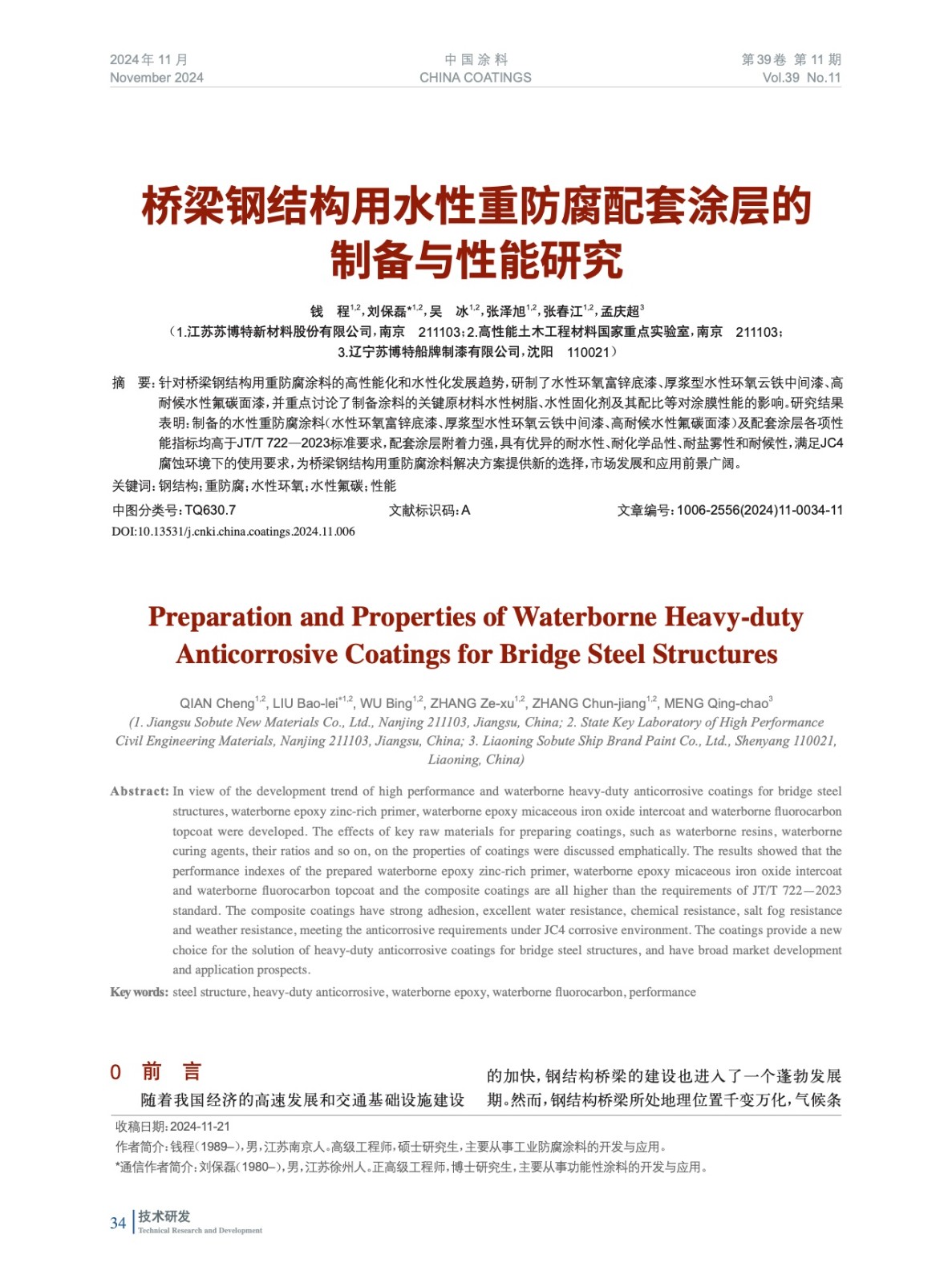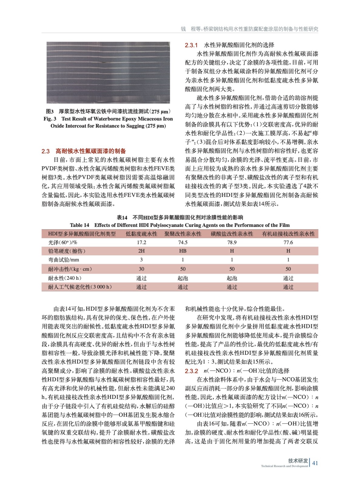 橋梁鋼結構用水性重防腐配套涂層的制備與性能研究